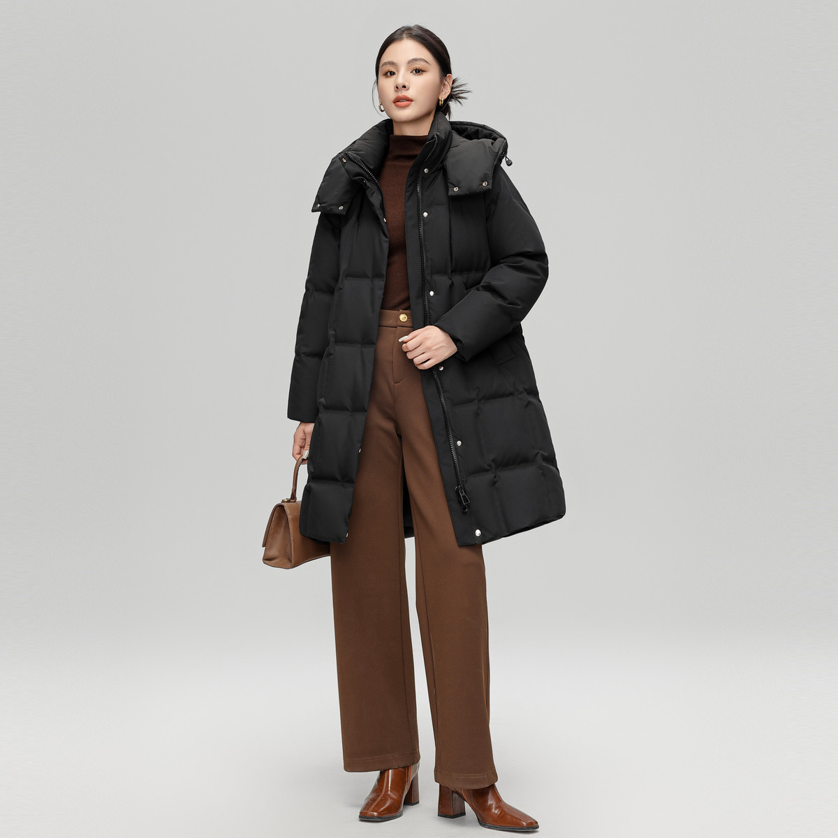 雪中飞2025冬新款女装长款羽绒服可脱卸帽韩版廓形纯色时尚休闲