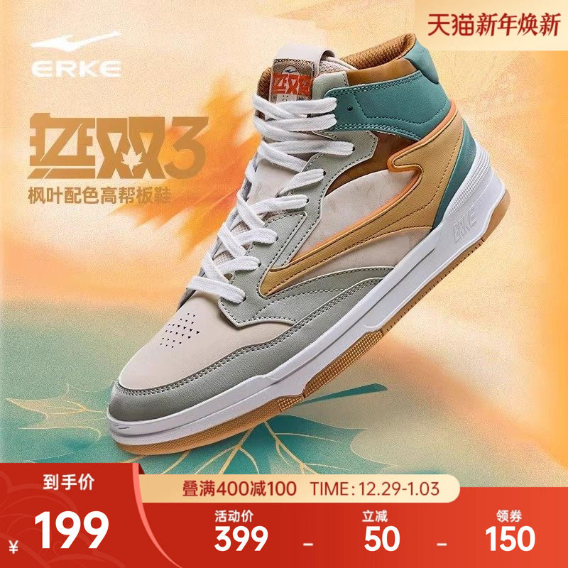 无双3.0鸿星尔克板鞋运动鞋学生百搭鞋子冬季新款增高鞋高帮男鞋