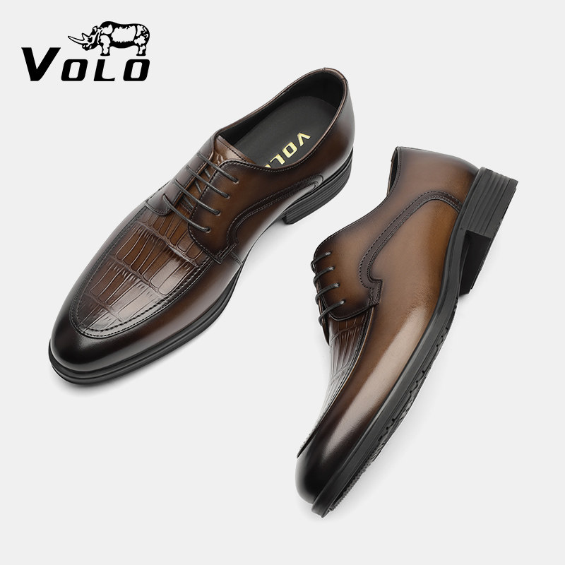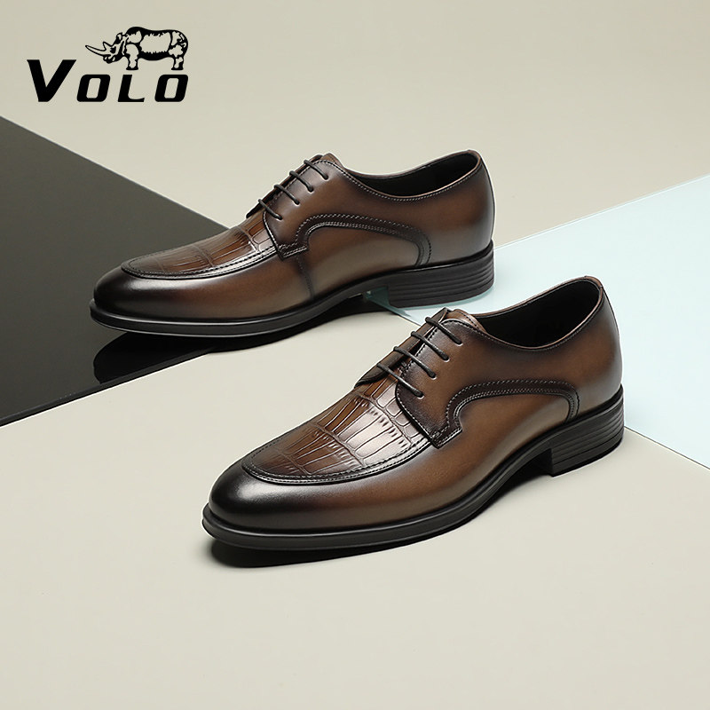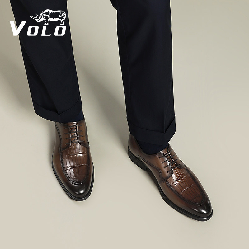 VOLO犀牛皮鞋男真皮正品高档男鞋男士商务皮鞋秋冬增高德比鞋品牌