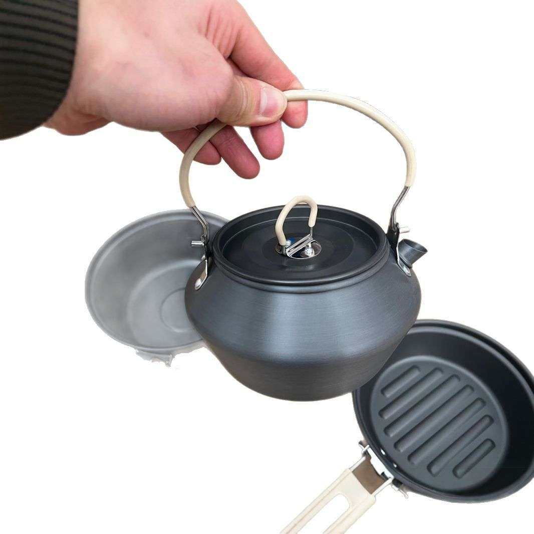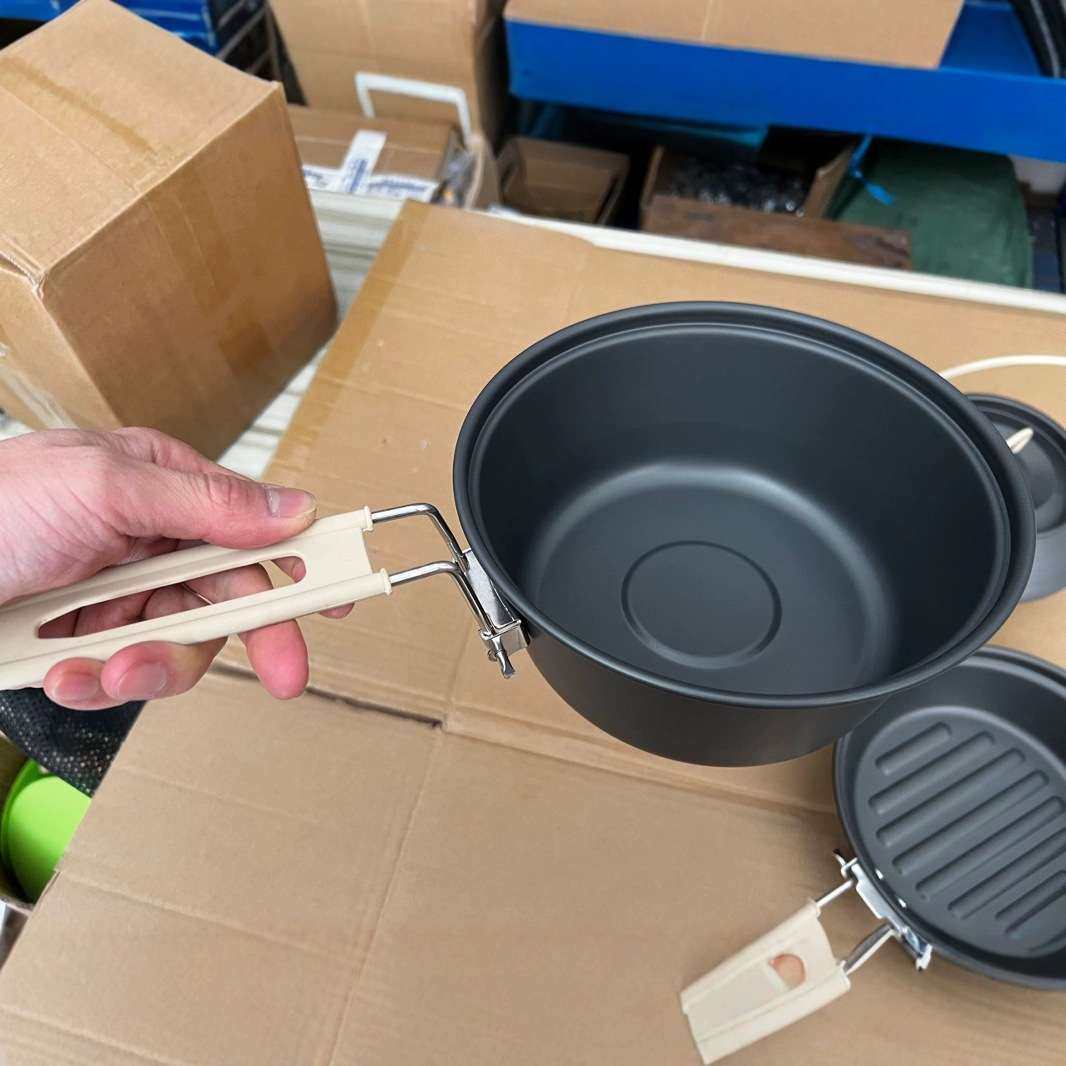 新款户外便携折叠不粘锅煎锅套锅露营野营平底锅炊具餐具野炊用品