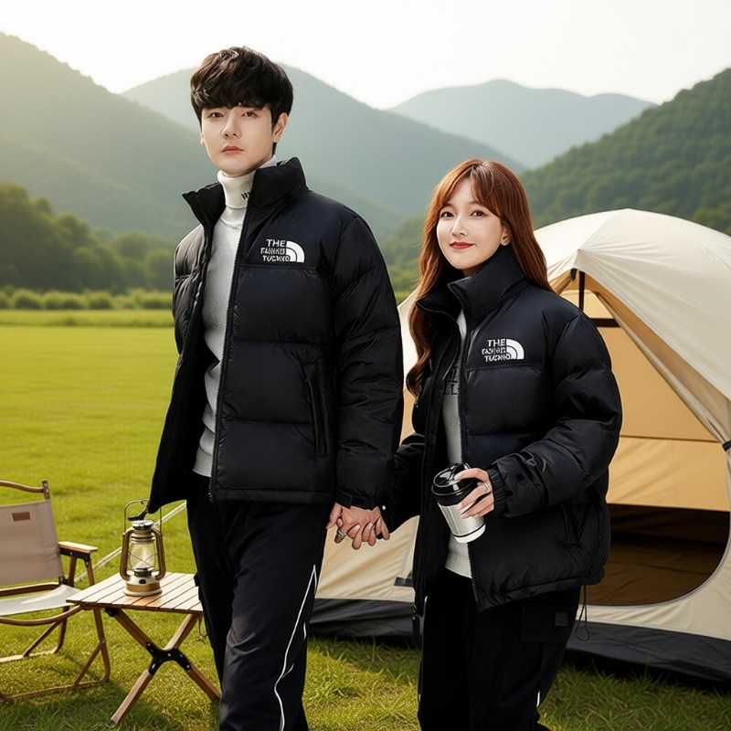 潮牌款2025新款黑色经典情侣700蓬保暖立领羽绒服外套白鸭绒防水
