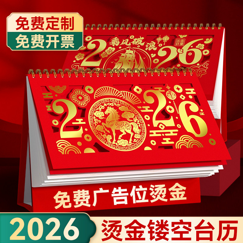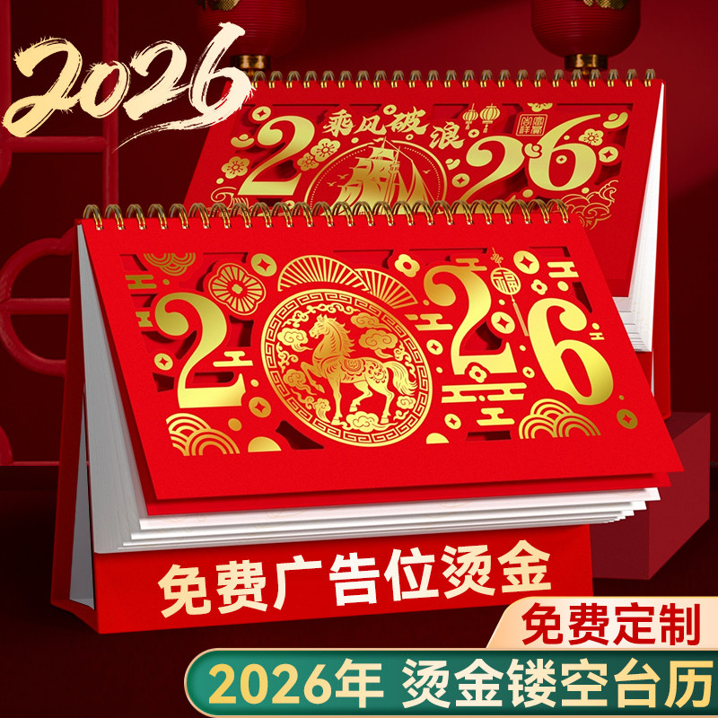 台历2026年新款定制特大号红色喜庆台历2025企业日历订制定做商务办公室桌面摆件蛇年镂空创意月年历高档挂历