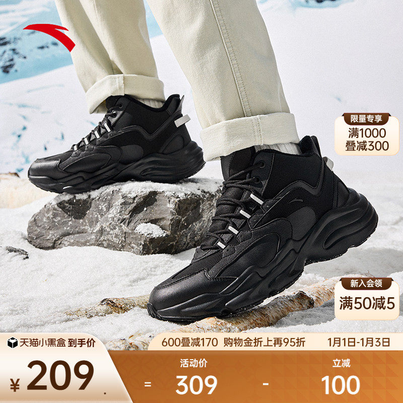 安踏加绒加厚保暖高帮大棉鞋男冬季厚底增高休闲鞋潮流运动鞋男鞋