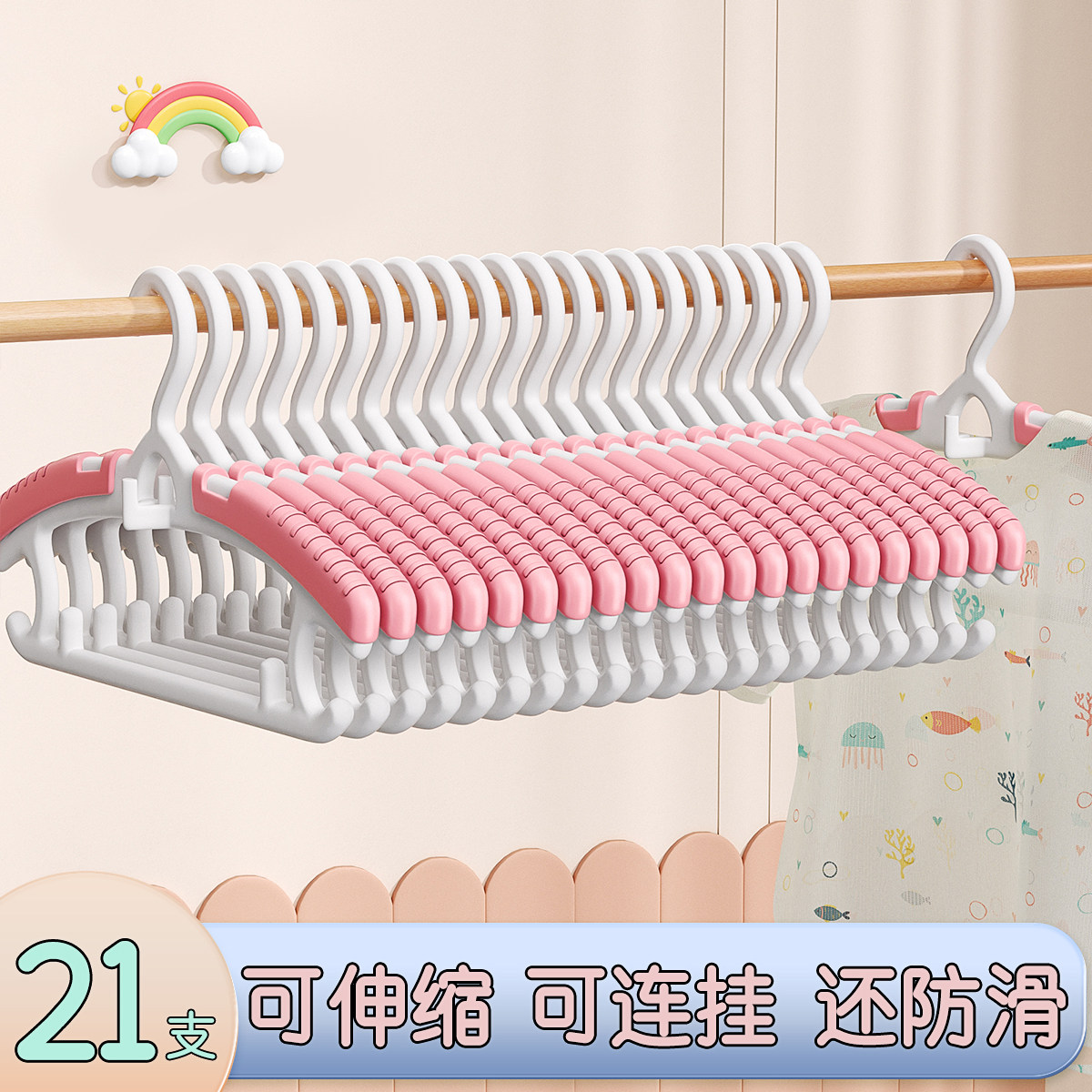 儿童衣架婴儿宝宝专用晾晒衣服伸缩小孩新生幼儿中大童家用挂衣撑