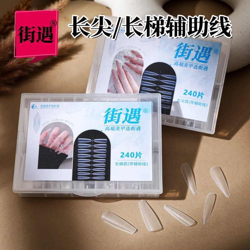 街遇美甲细狗梯形长尖免刻甲片半贴美甲店磨砂延长指甲穿戴透明