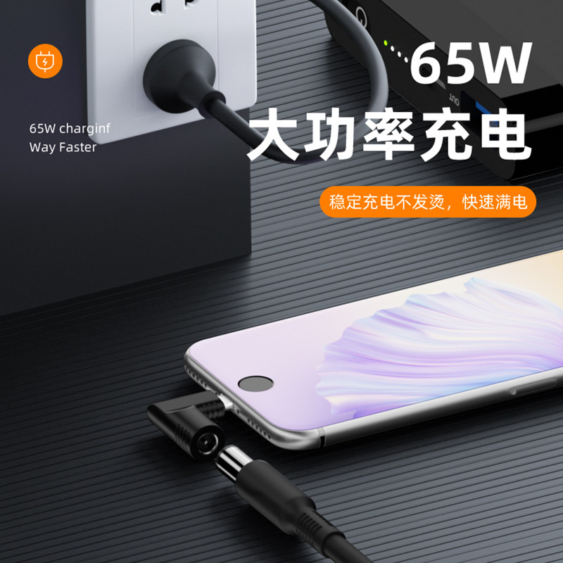 拓振方口转Typec充电转换器DC转接头适用于联想惠普戴尔华硕宏基圆头电源圆孔dc转笔记本USB-C适配器头线65W