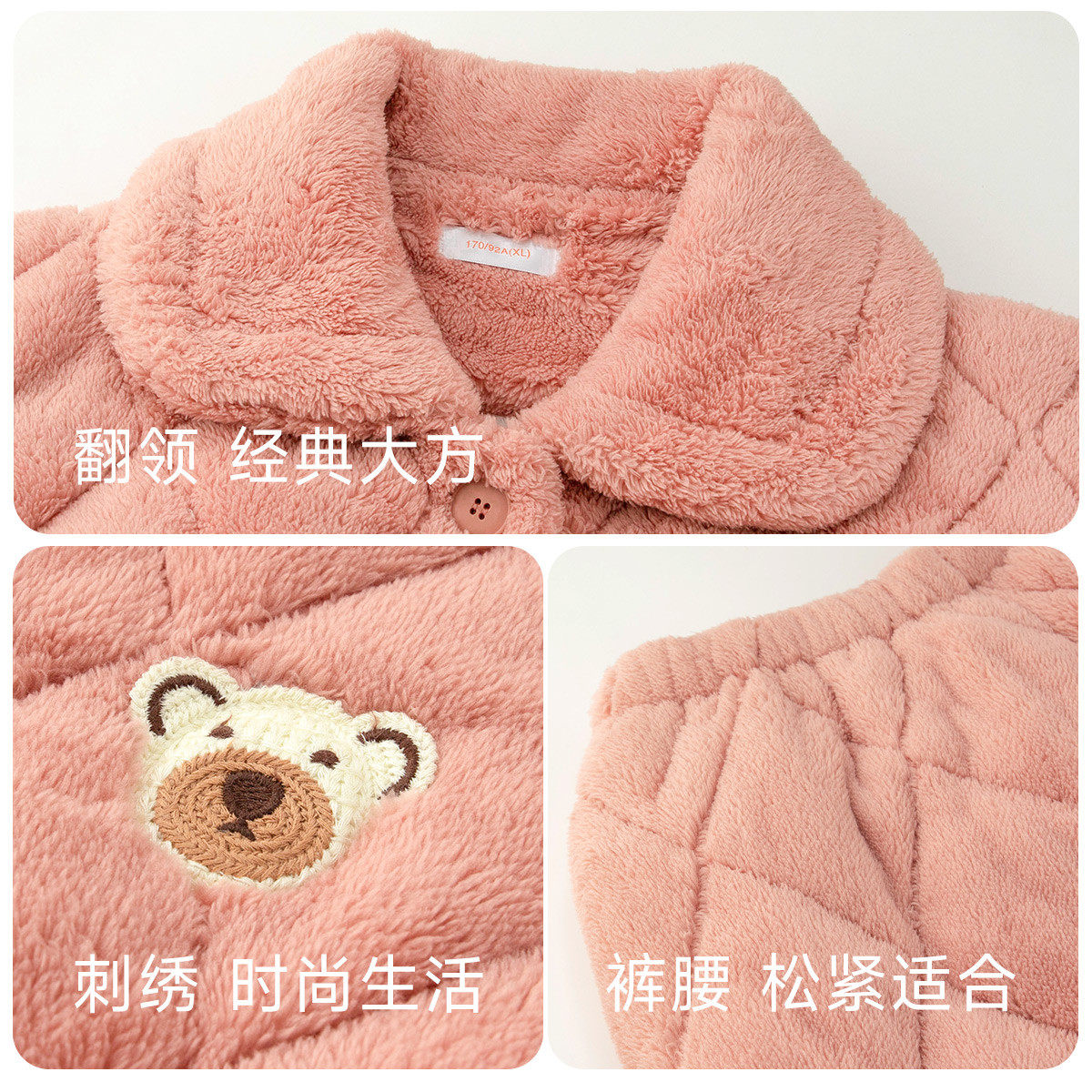 冬季珊瑚绒男士睡衣三层夹棉加厚加绒法兰绒秋冬款家居服保暖套装