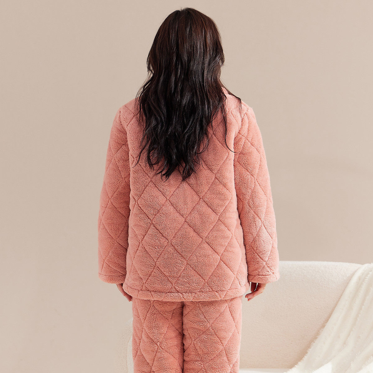 GOSO香蜜闺秀绒面三层夹棉加厚睡衣女冬新款长袖可外穿家居服套装