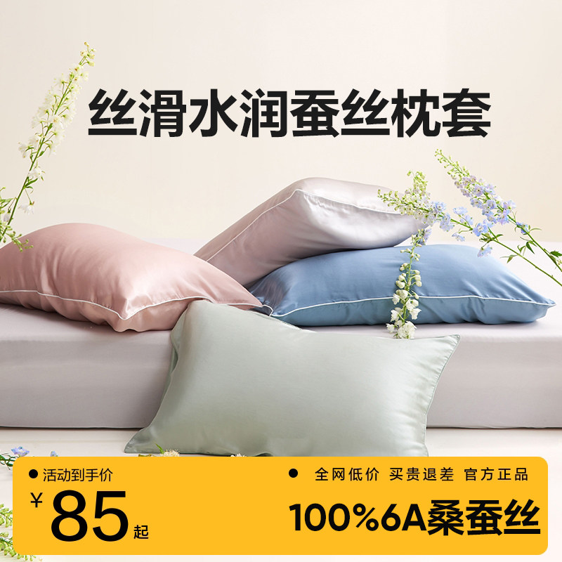 网易严选真丝枕套纯色桑蚕丝单个枕头套48x74枕巾细腻丝滑亲肤
