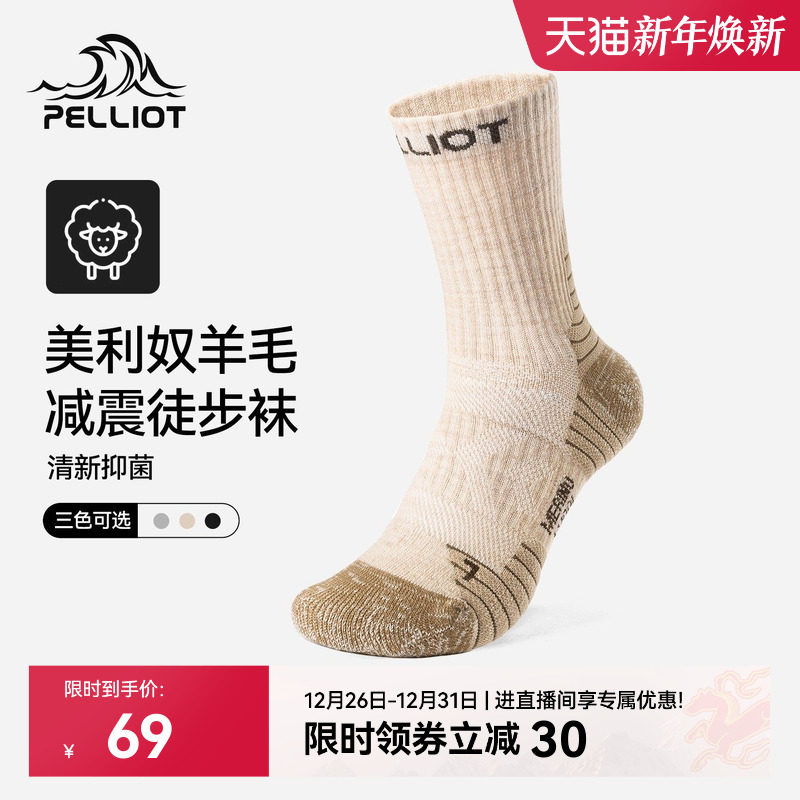 伯希和户外登山袜男美利奴羊毛冬季徒步保暖袜子专业跑步防滑袜女