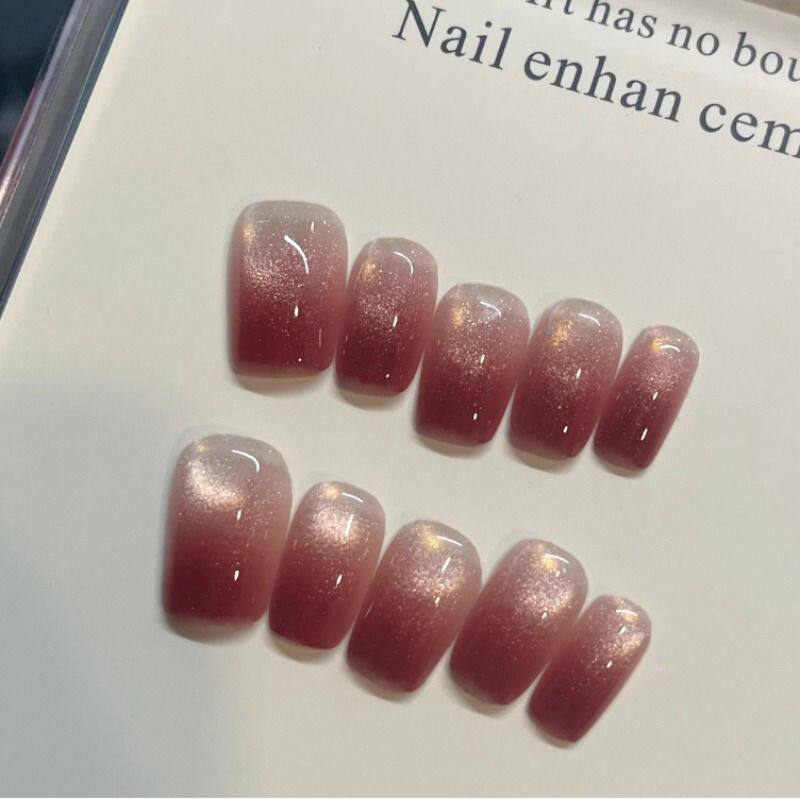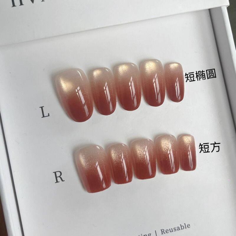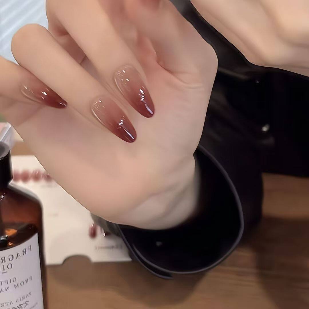 秋冬新款车厘子红猫眼感手工美甲穿戴甲显白高级豆豆椭圆扁平琥珀