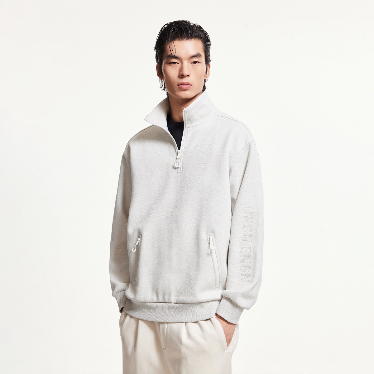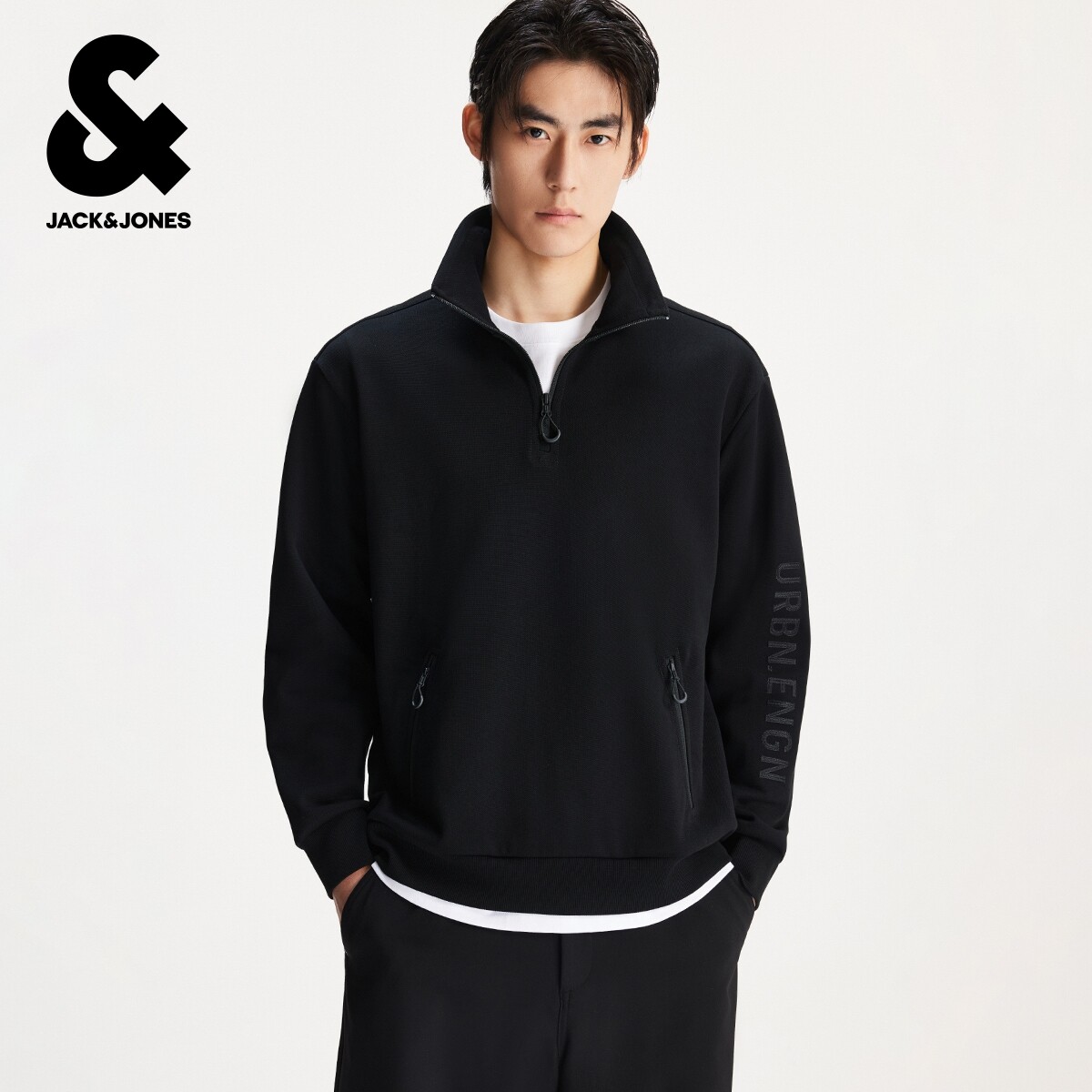 杰克琼斯男装秋季时尚百搭潮流宽松立领拉链门襟字母刺绣卫衣上衣