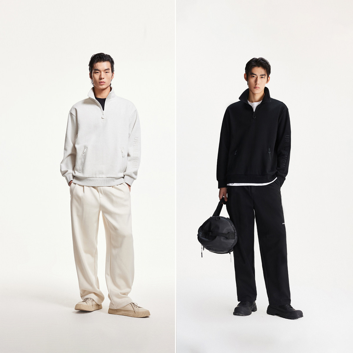 宽松版型;立领领口,拉链门襟,拉链插袋