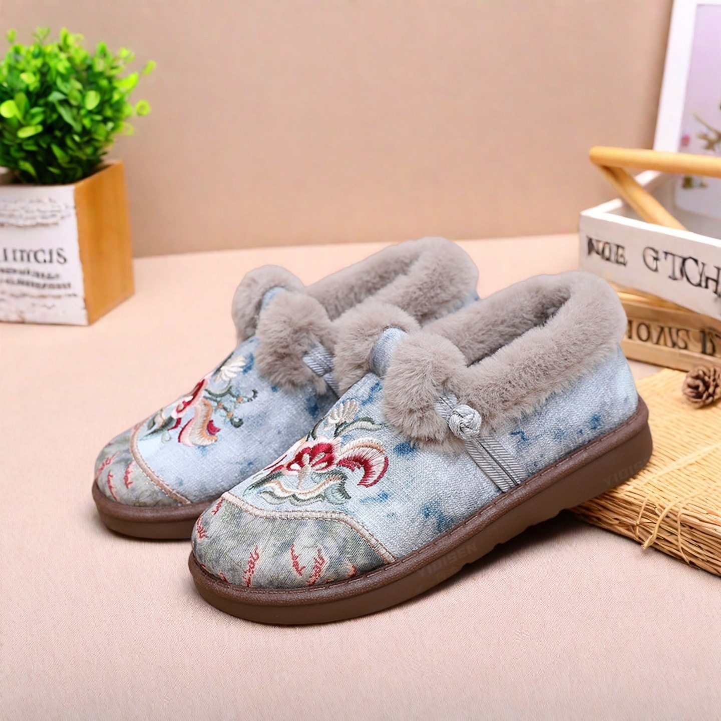 女2025冬季老北京布鞋保暖妈妈鞋新中式棉鞋加绒加厚绣花鞋不累脚