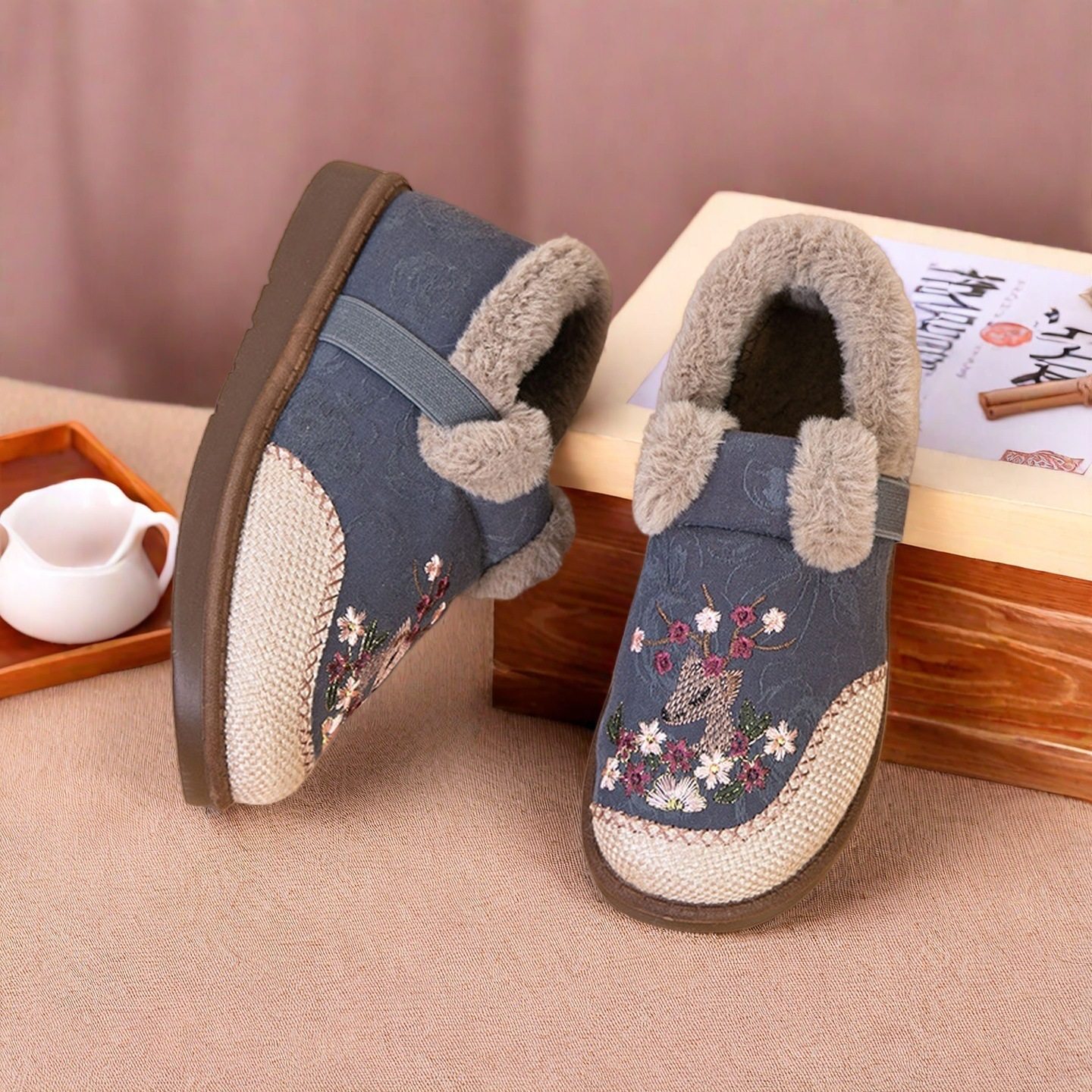 冬加绒原创非遗虎头鞋女新中式手工绣花鞋软底保暖平底民族风棉鞋
