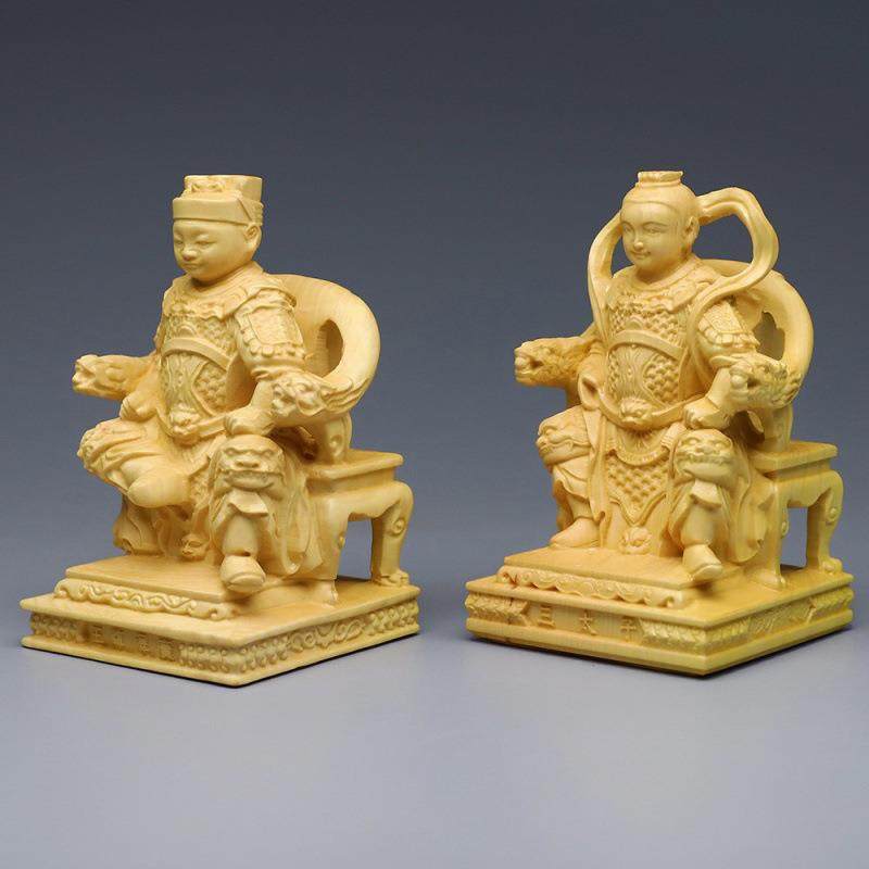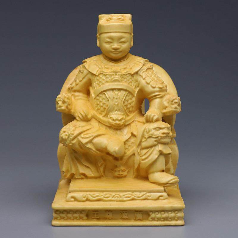 黄杨木雕光泽天王实木雕刻像摆件脱椅坐椅三太子玄天上帝武