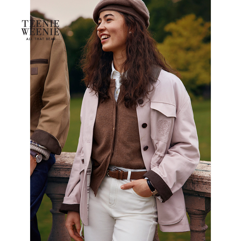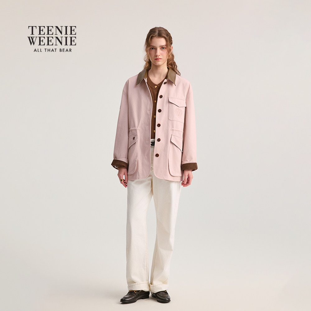 TeenieWeenie小熊女装巴恩风外套2025秋季新款时髦工装风翻领夹克