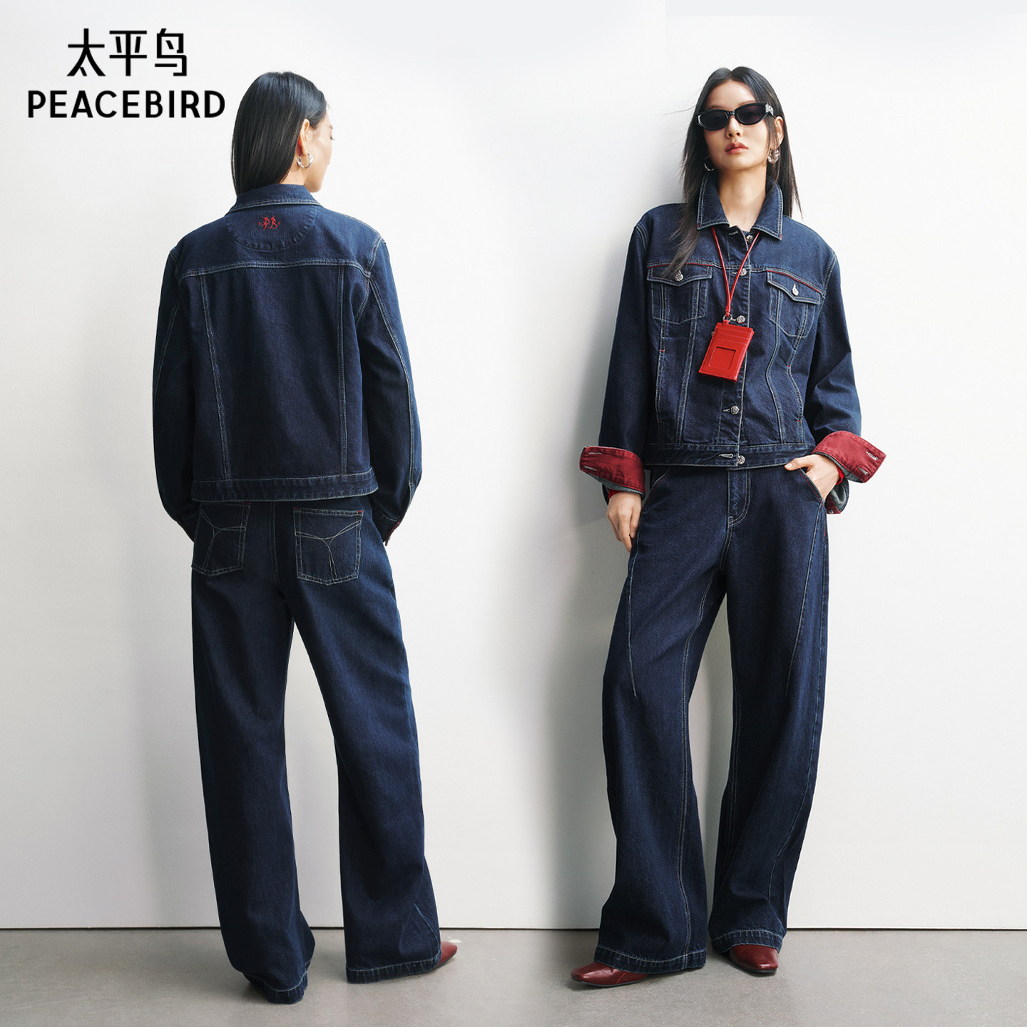 【商场同款】太平鸟丹宁套装莱赛尔牛仔外套哈伦裤女A3BBG122401