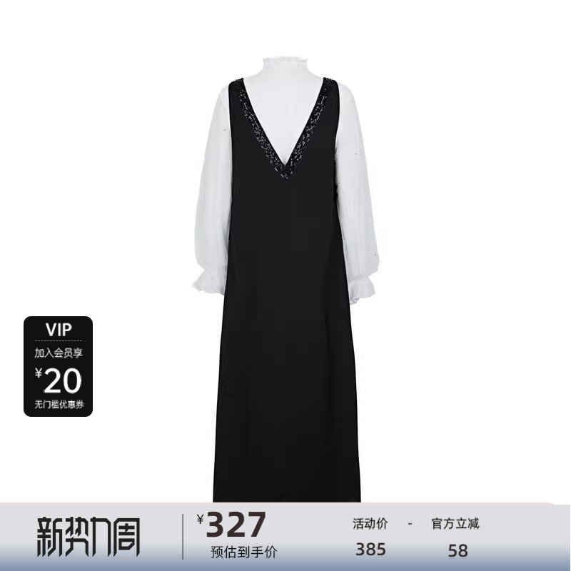 【裙子清仓99元起】半练带胸垫连衣裙秋季打底背心裙黑白吊带裙子