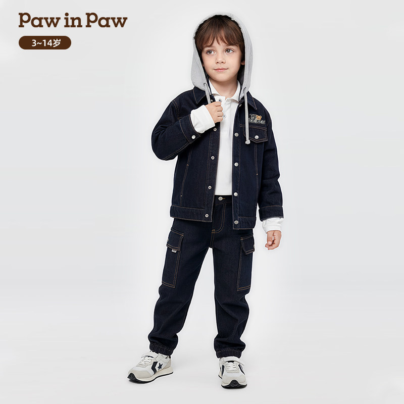 【商场同款】PawinPaw卡通小熊童装26年春季新款男童连帽牛仔外套