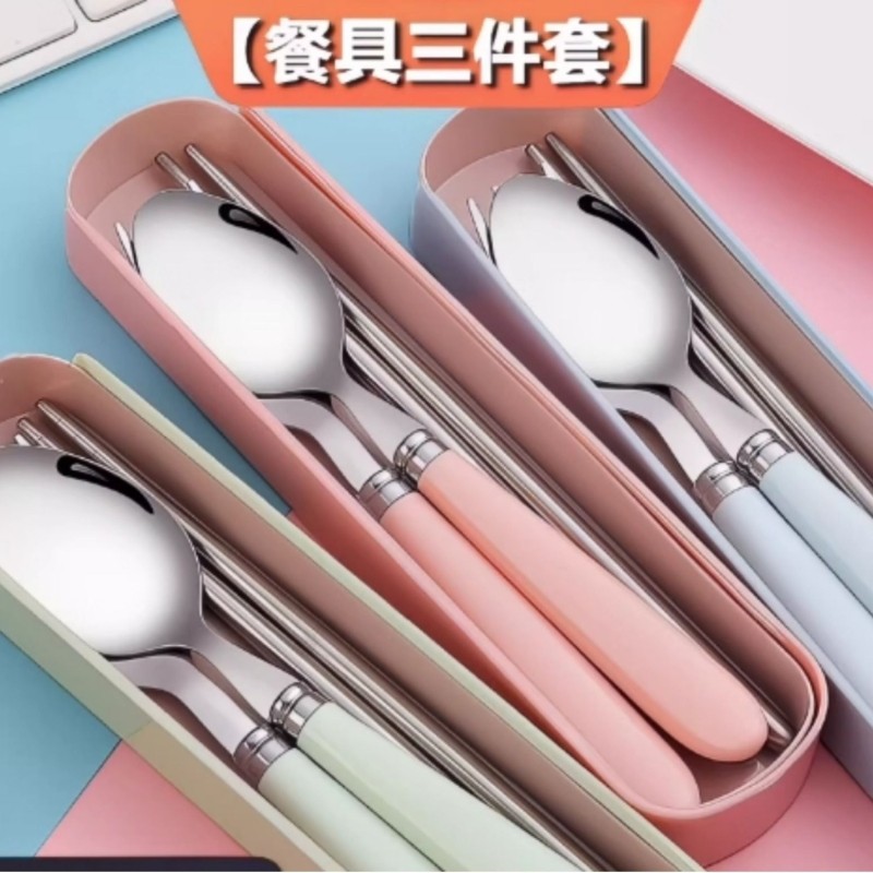 便携餐具套装不锈钢勺子筷子叉子家用学生儿童简约餐具三件套跨境