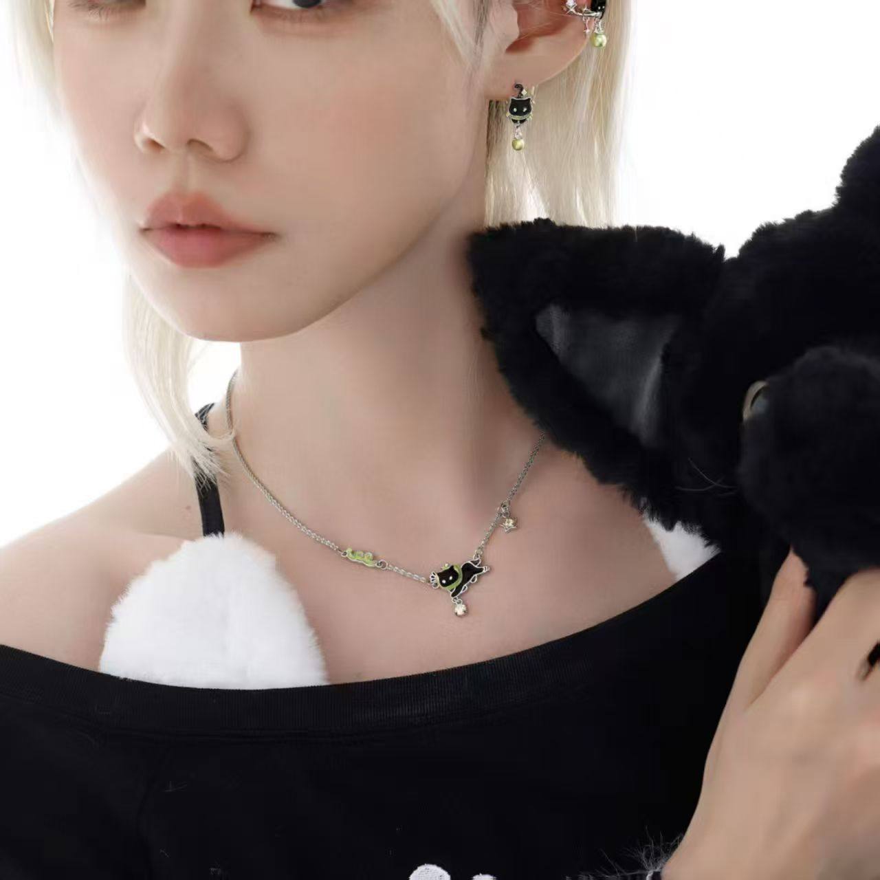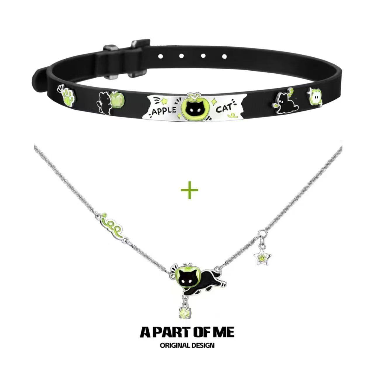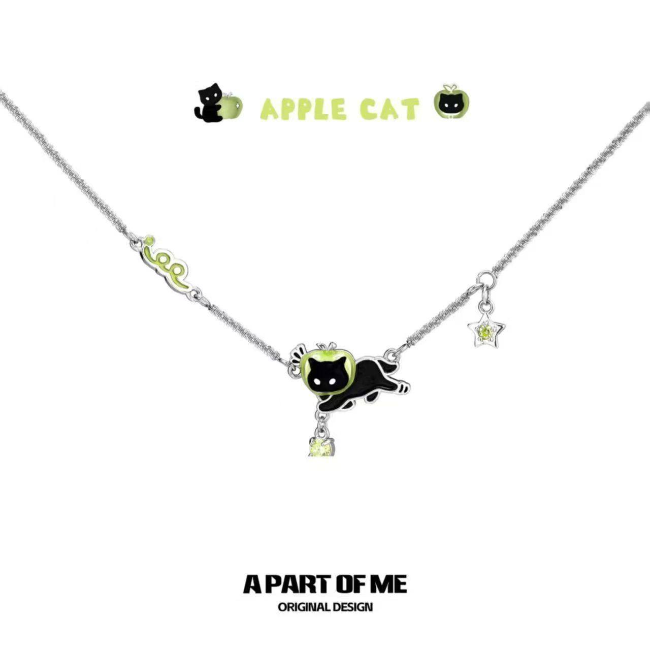 原创黑猫青苹果叠戴项链小众choker辣妹y2k锁骨链小众设计颈链