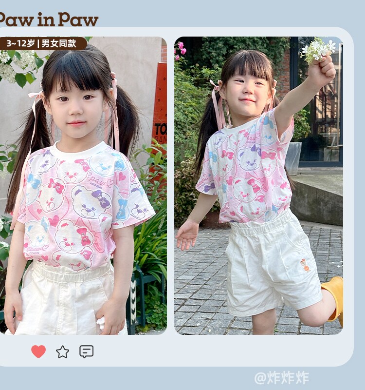 PawinPaw卡通小熊童装夏男女童纯棉休闲可爱满印短袖T恤