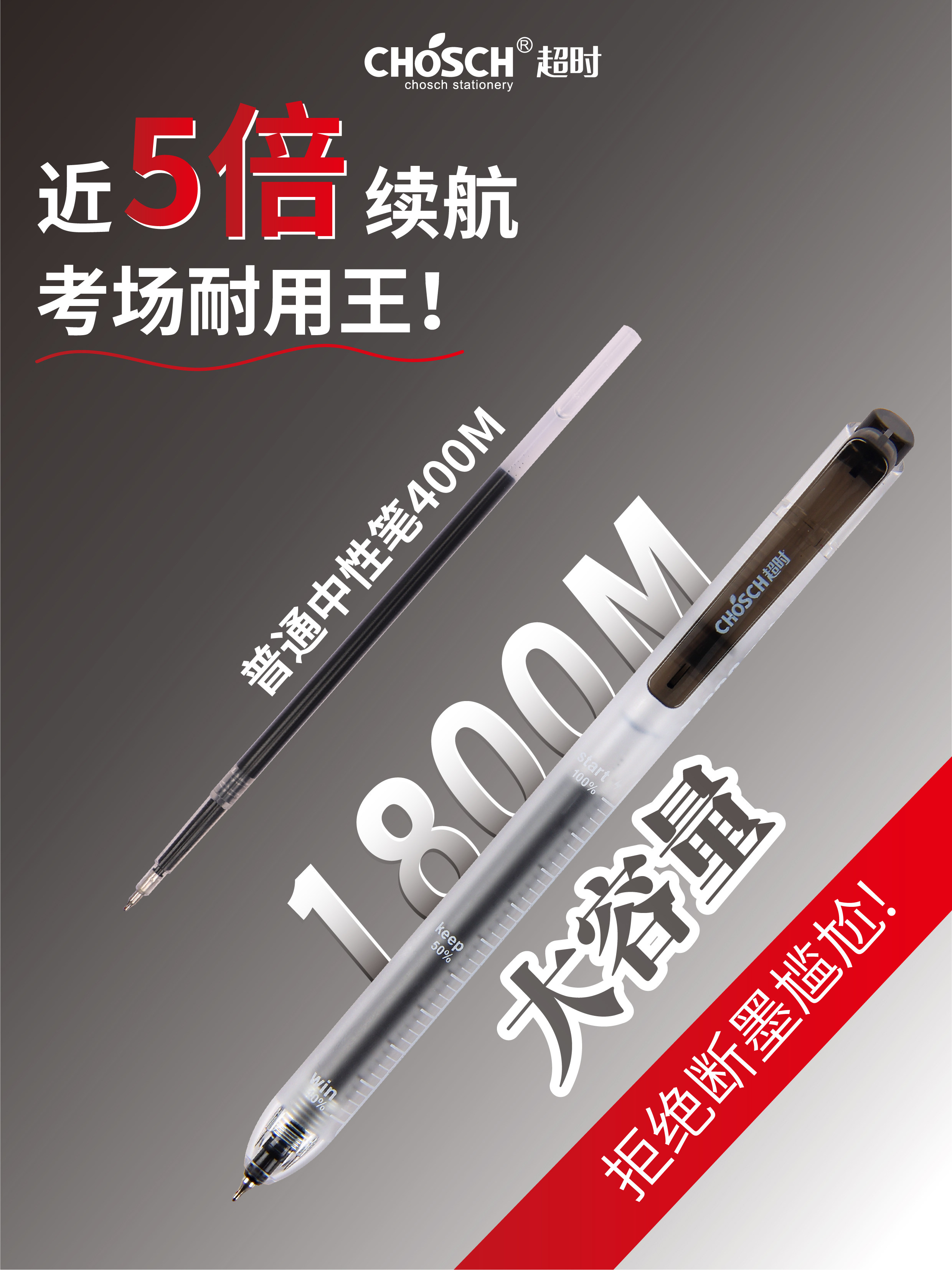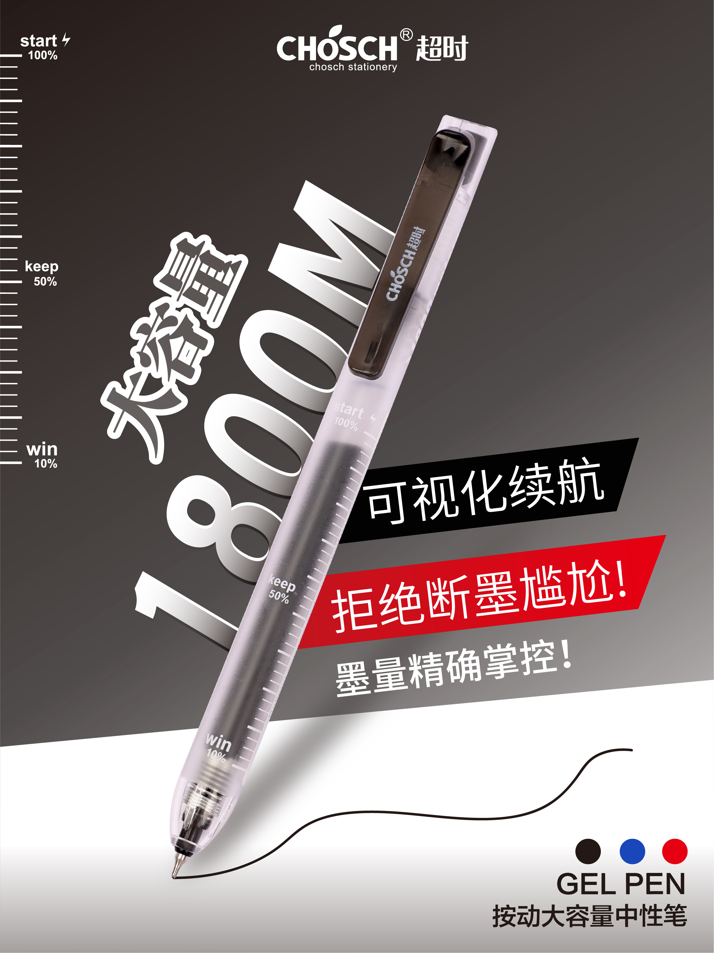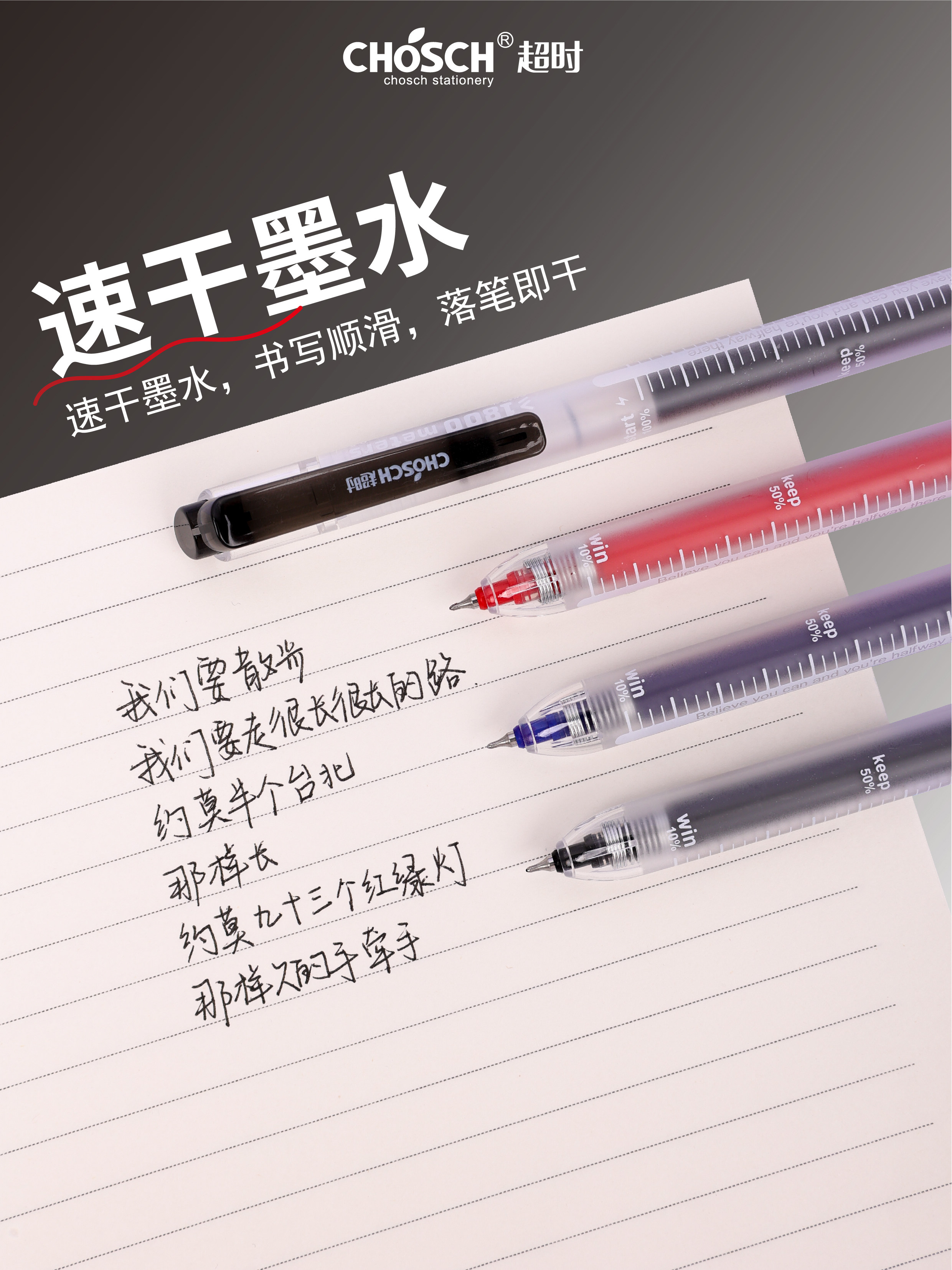 刻度大容量速干中性笔CS透明ins风按动笔学生考试刷题笔双珠顺滑