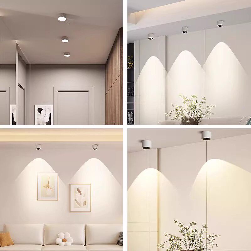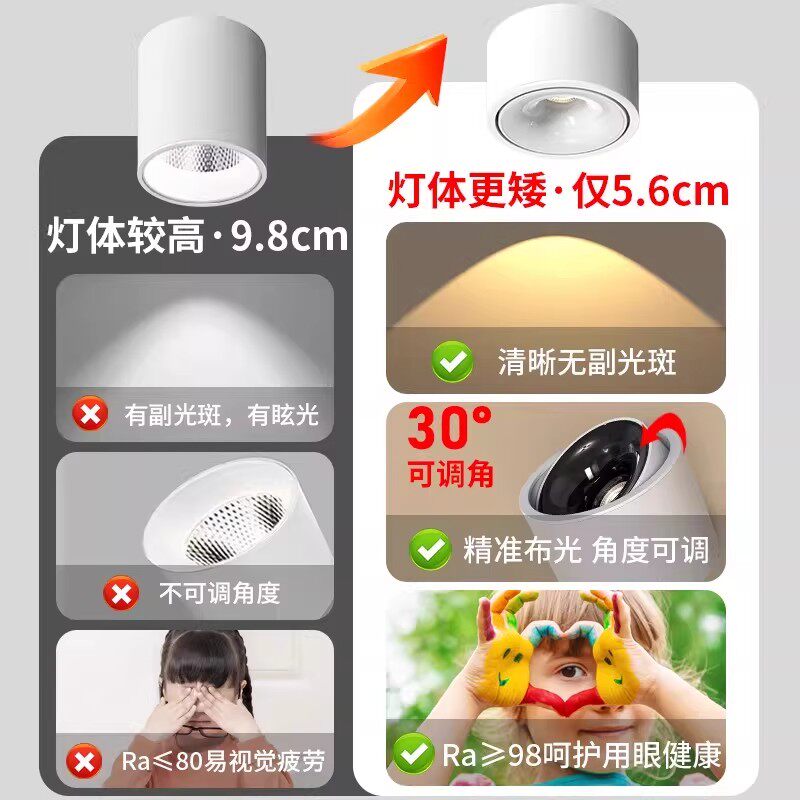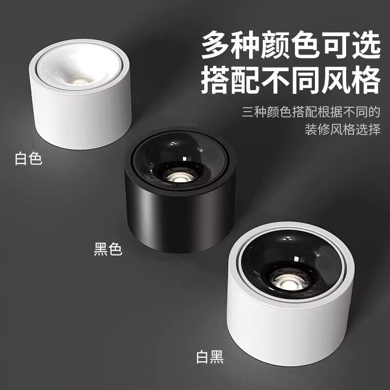 超薄明装射灯防眩可调角度免打孔小山丘客厅家用天花灯圆形无主灯