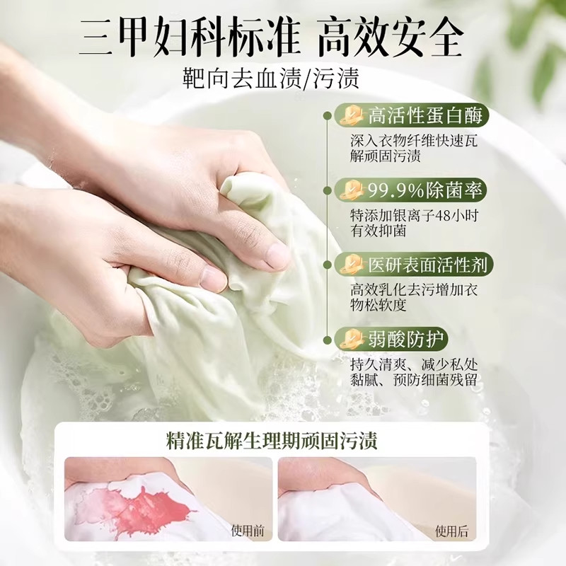 妇炎洁内裤清洗液女士除菌除螨清洗剂祛血渍黄官方专用内衣洗衣液