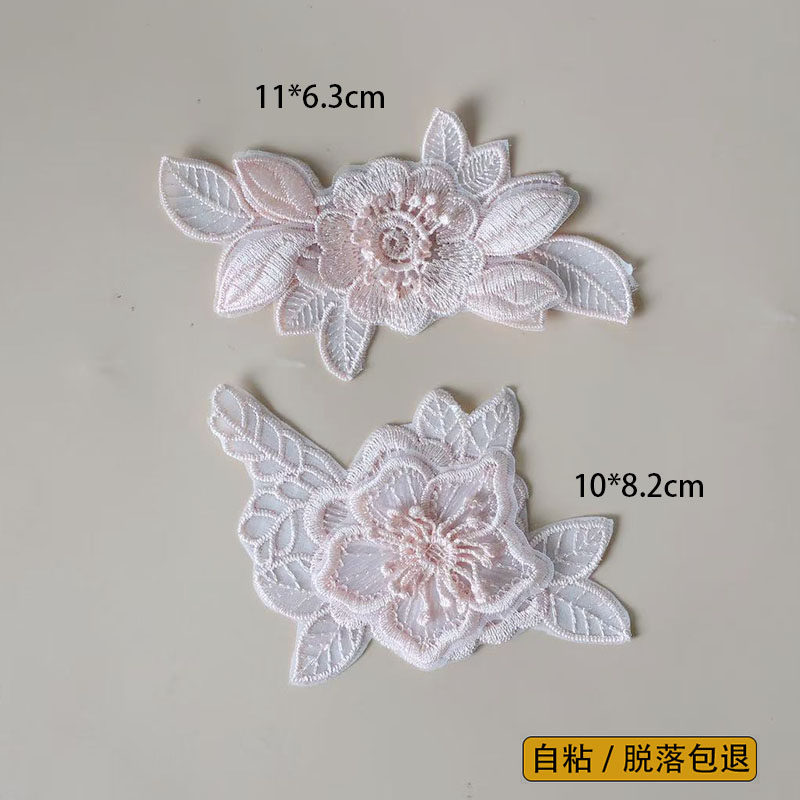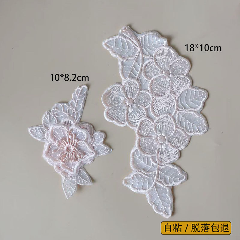 自粘蕾丝补丁贴花朵贴衣服羽绒欧根纱刺绣网纱裙无痕修复破洞粘贴