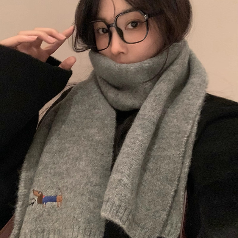 韩系仿羊绒小围巾女冬季2025新款小巧ins围脖学生感红色灰色氛围