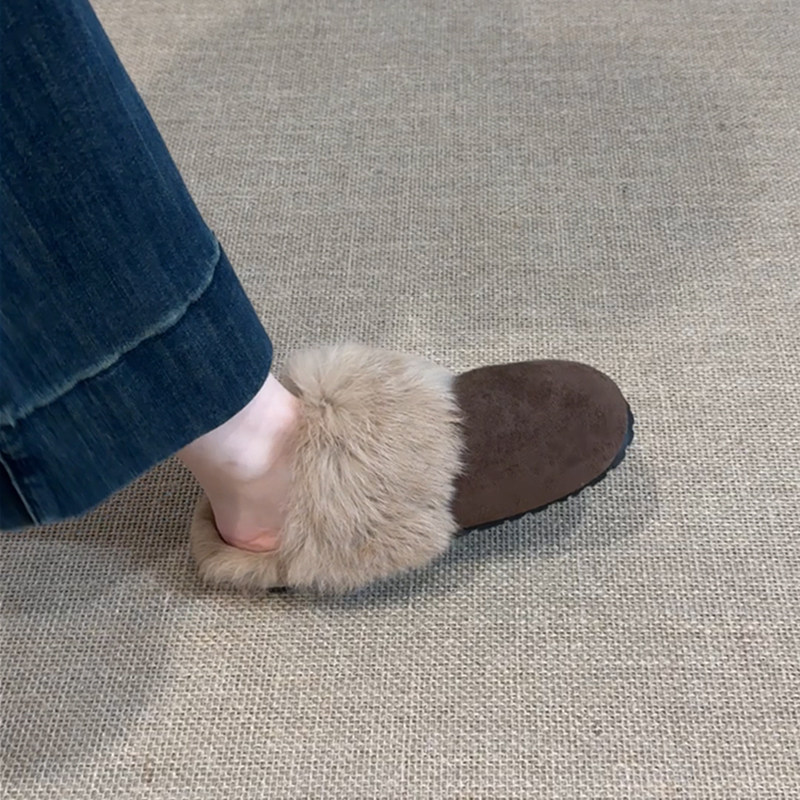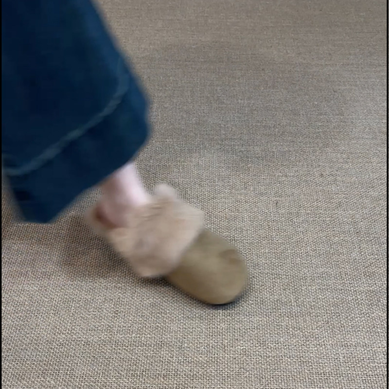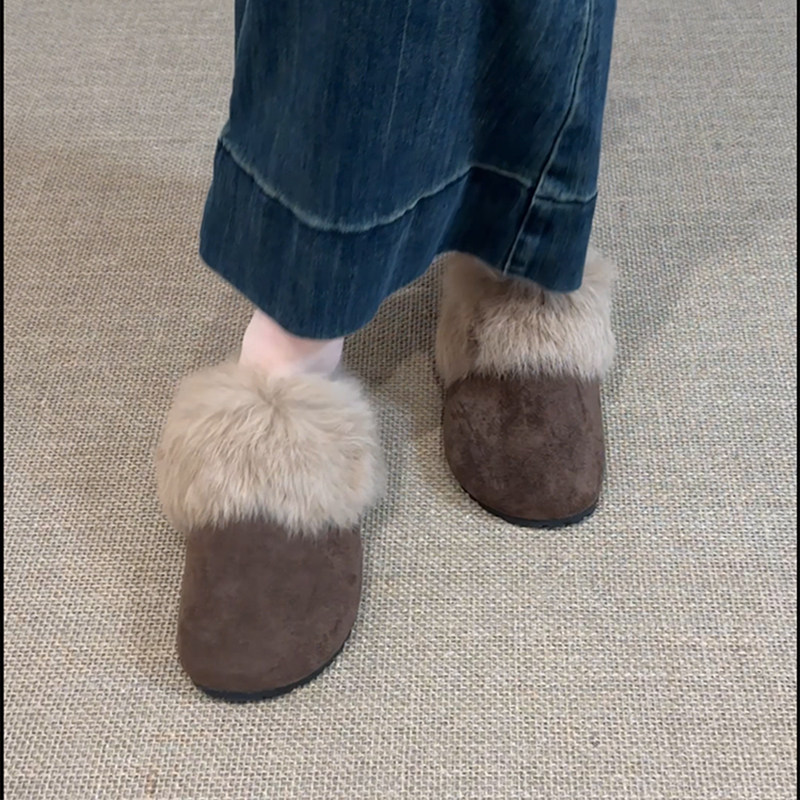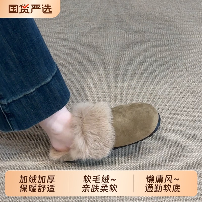 时尚百搭平底加绒包头半拖鞋女外穿2025冬季新款毛毛棉拖雪地靴女