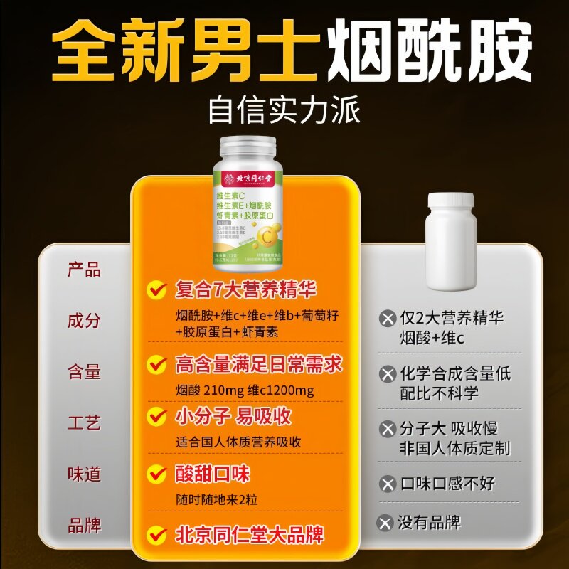 烟酰胺男士专用维生素C维生素E皮肤变白内调复合咀嚼片多重营养