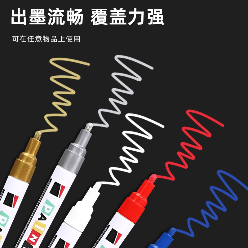 羽毛球拍补漆笔防水专用修复掉漆划痕油漆笔白色记号笔防水防油不掉色金银色涂鸦笔油性网球拍球框涂鸦上色