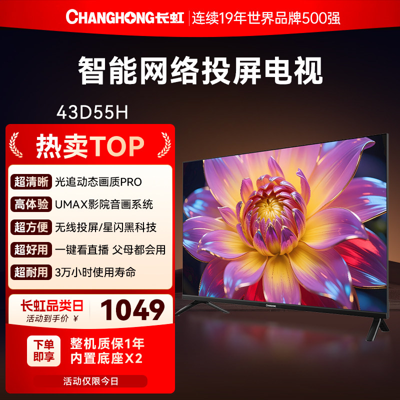 长虹43D55H 43英寸高清智能液晶电视机老人家用彩电官方正品国补