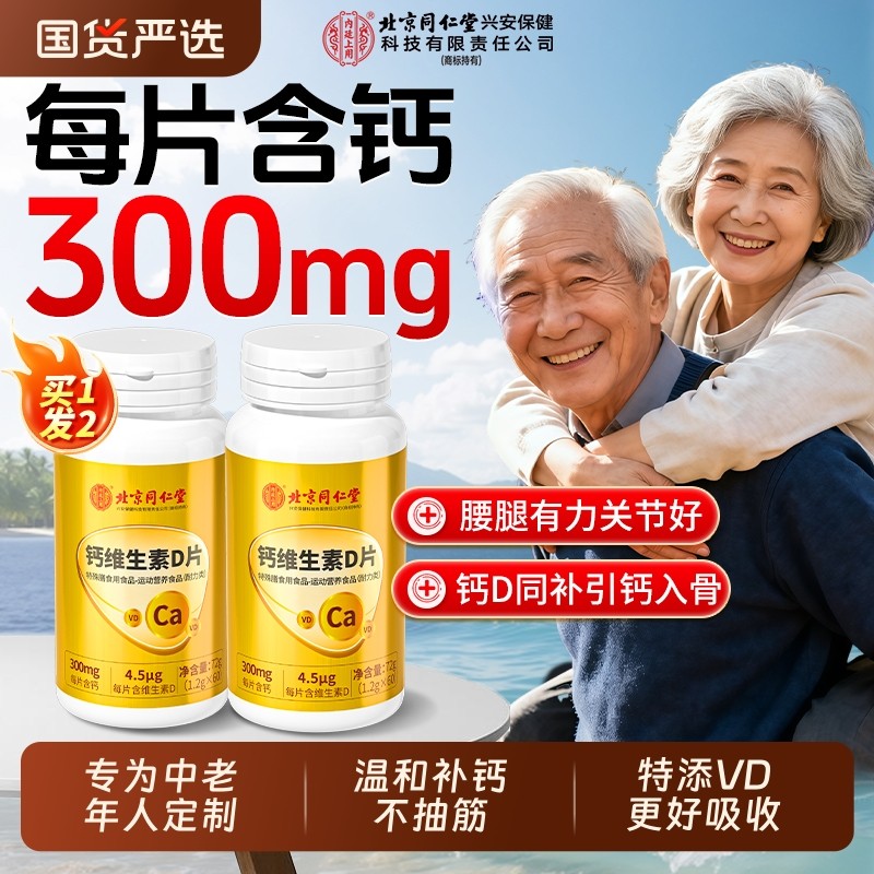 北京同仁堂钙片维生素d中老年人女性骨质疏松补钙正品官方旗舰店