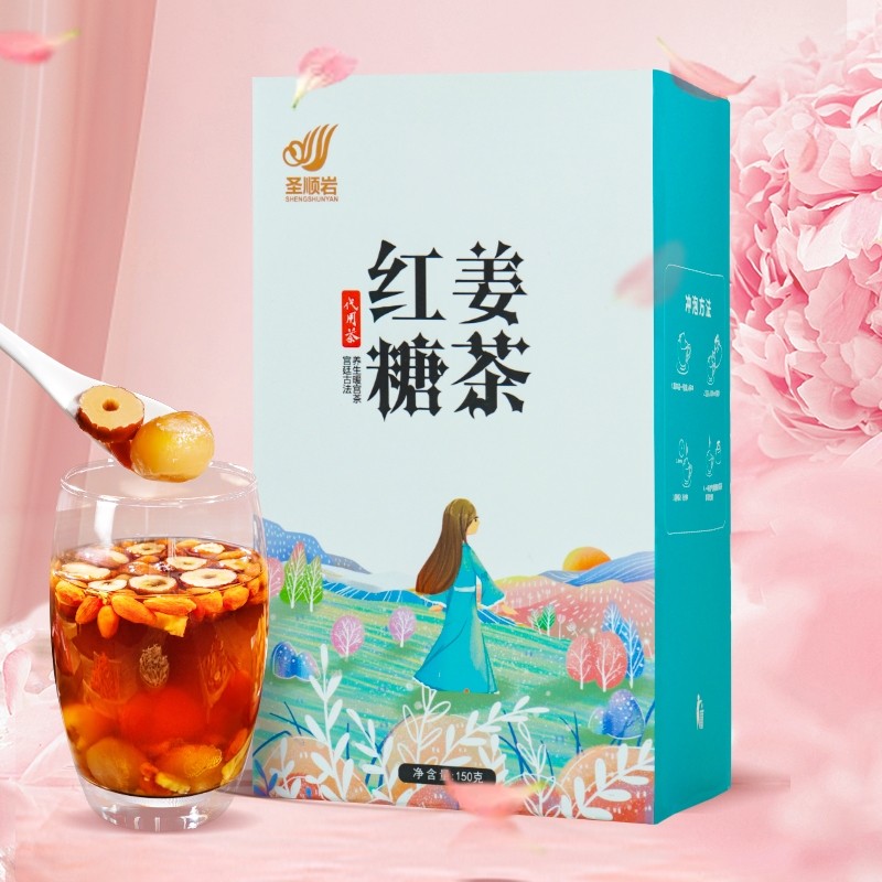 圣顺岩红糖姜茶黑糖桂圆枸杞红枣姜枣茶红糖盒装