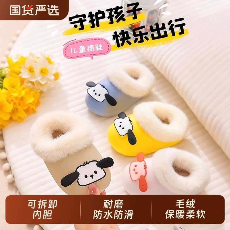 冬季宝宝棉拖鞋可爱小狗室内防水家居鞋男童女童小孩防滑保暖棉鞋