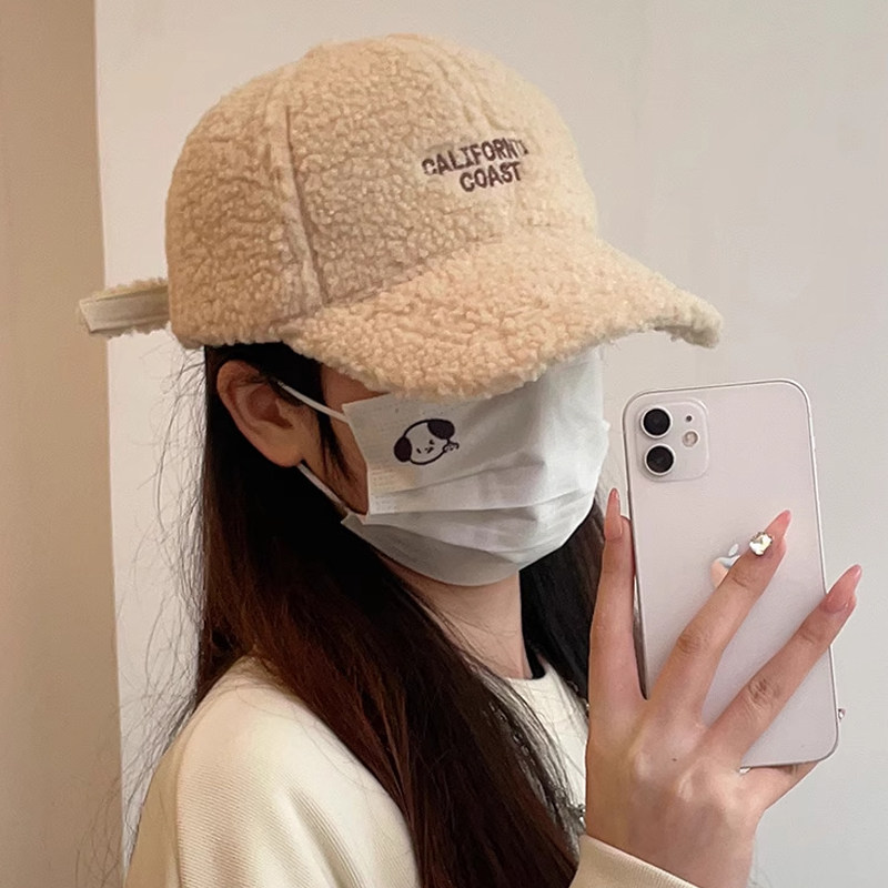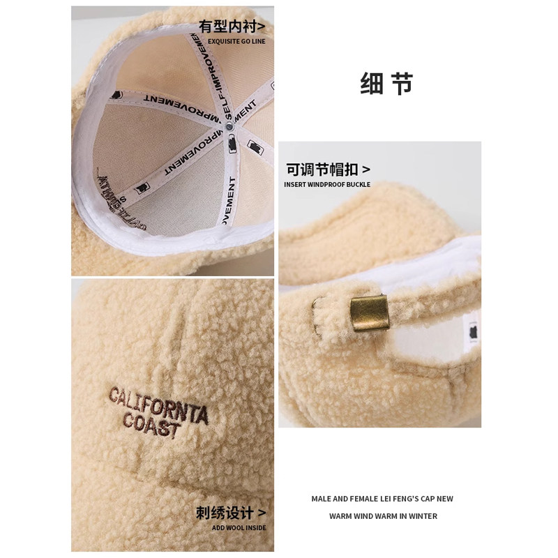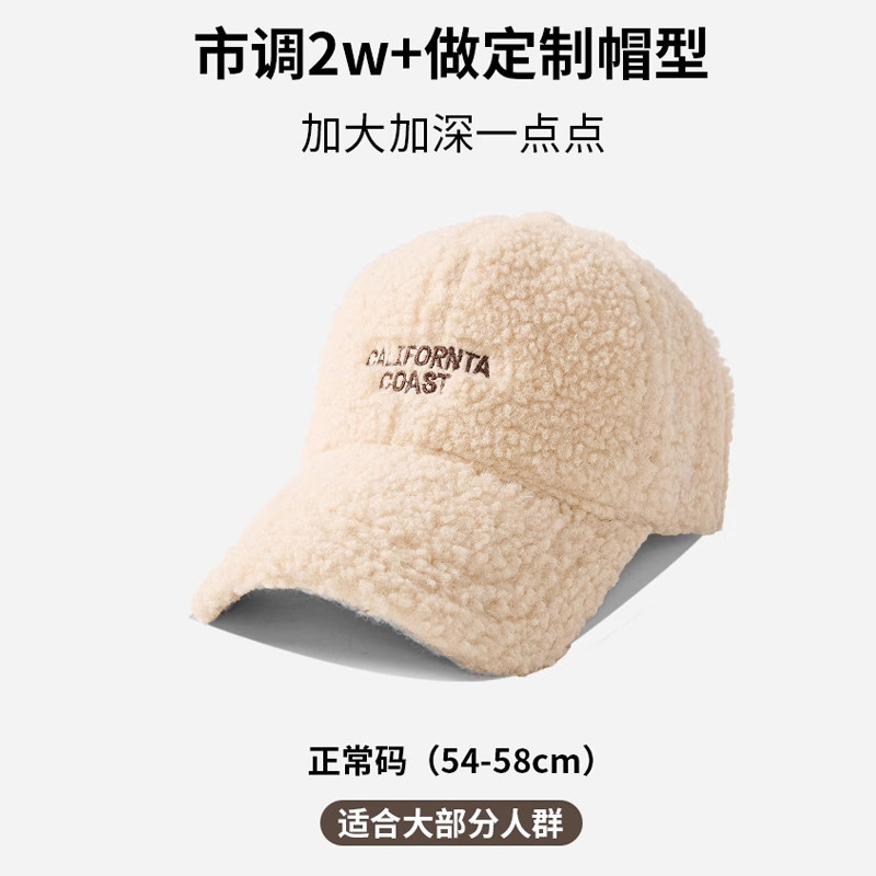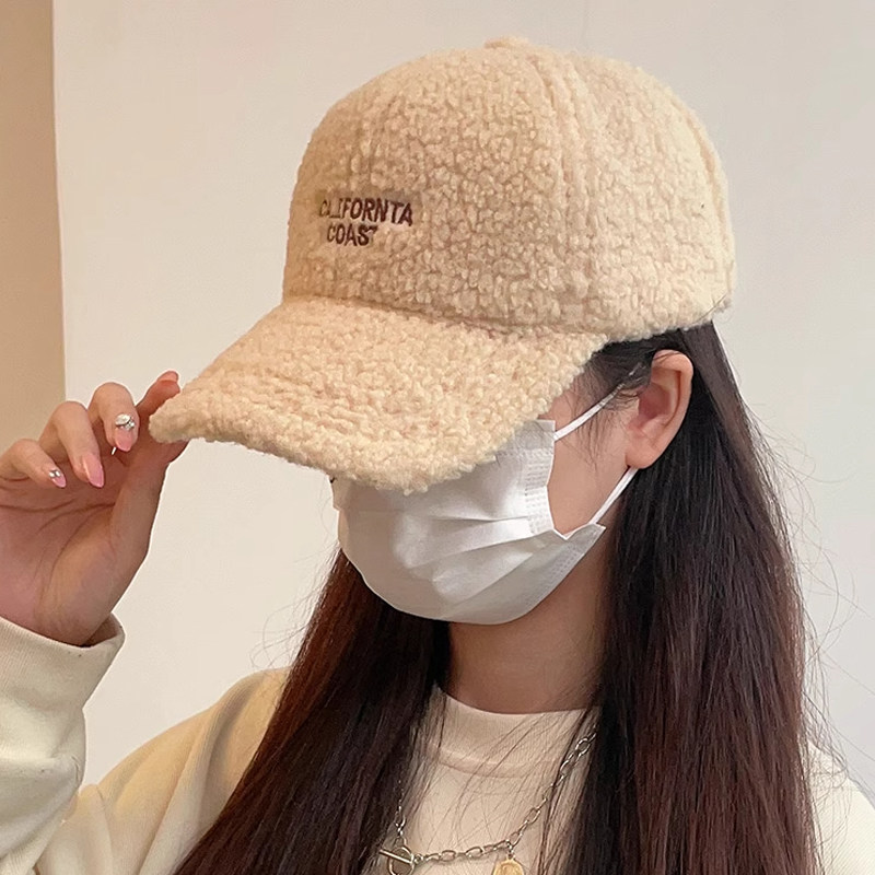 新款羊羔毛帽子女士秋冬季时尚百搭毛绒鸭舌帽加厚保暖棉帽棒球帽