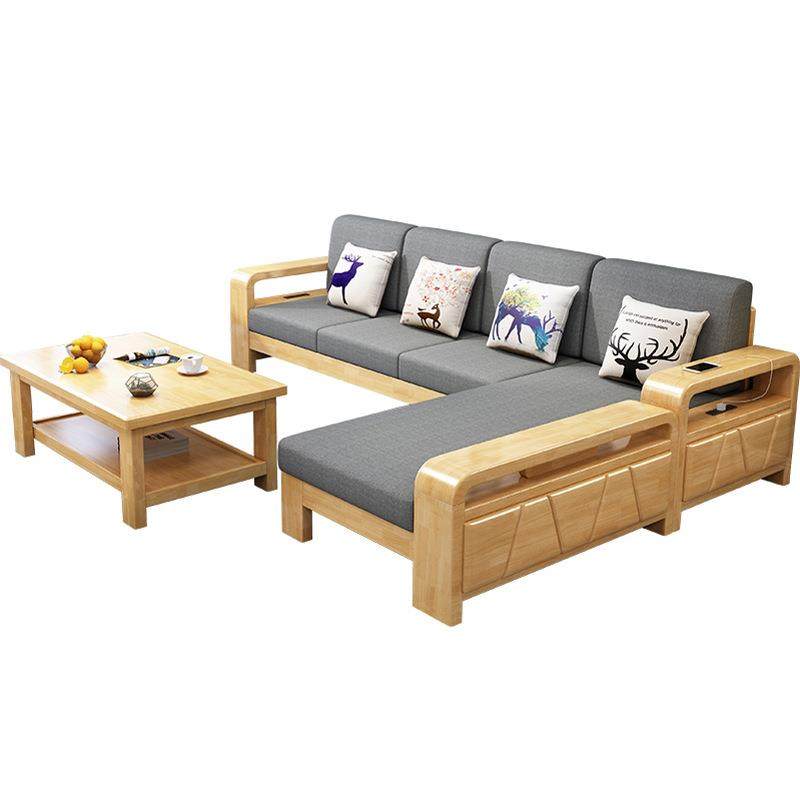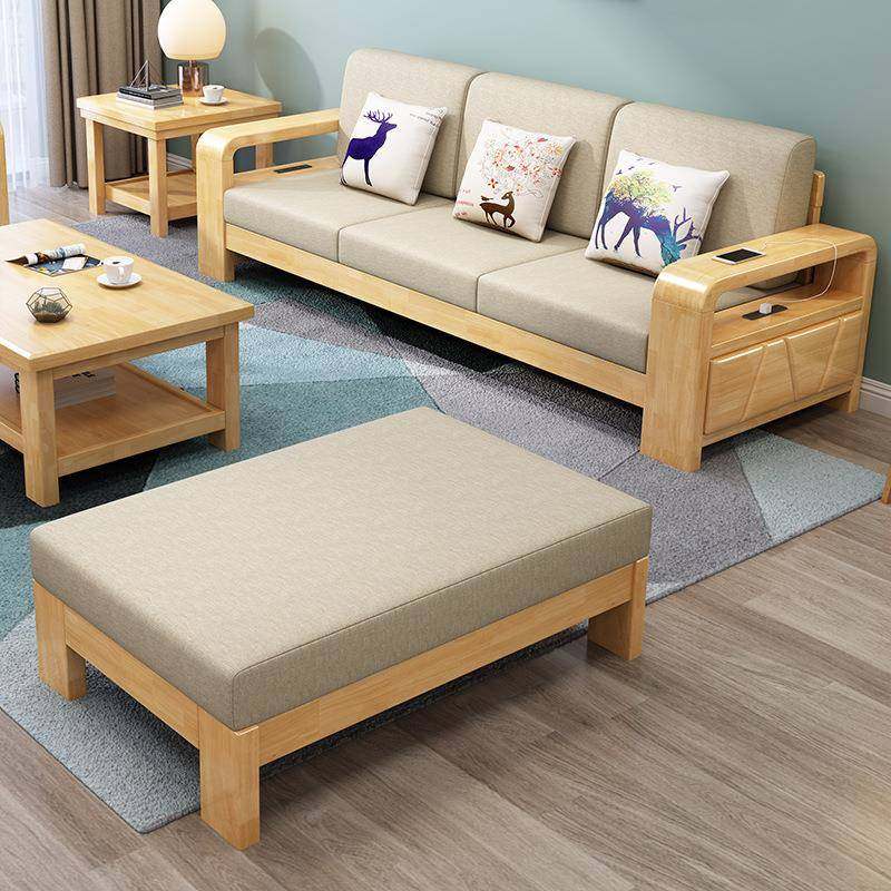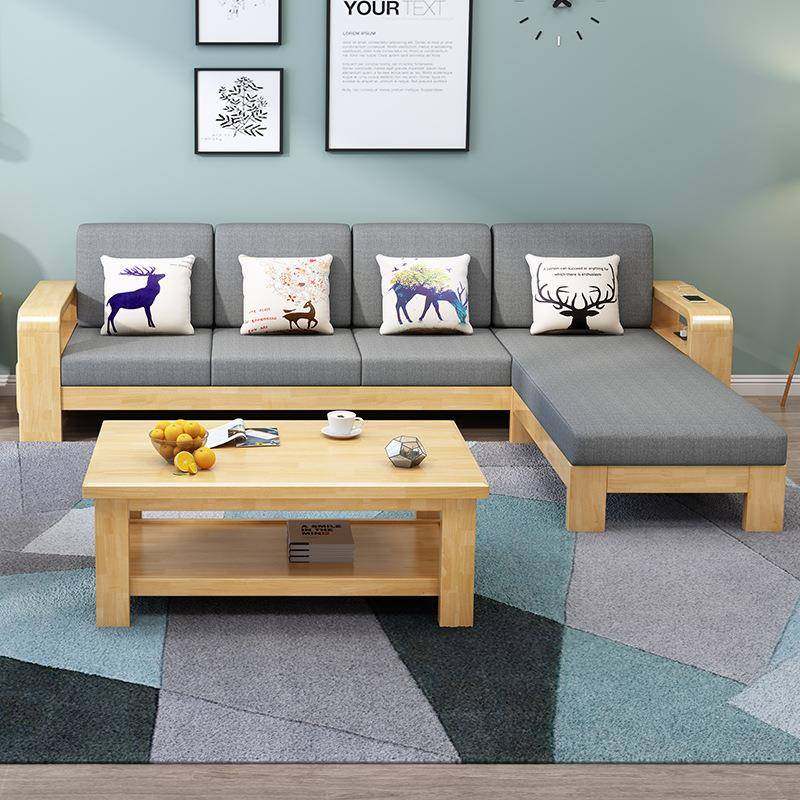 实木沙发现代简约客厅小户型转角贵妃布艺家具北欧木质沙发组合