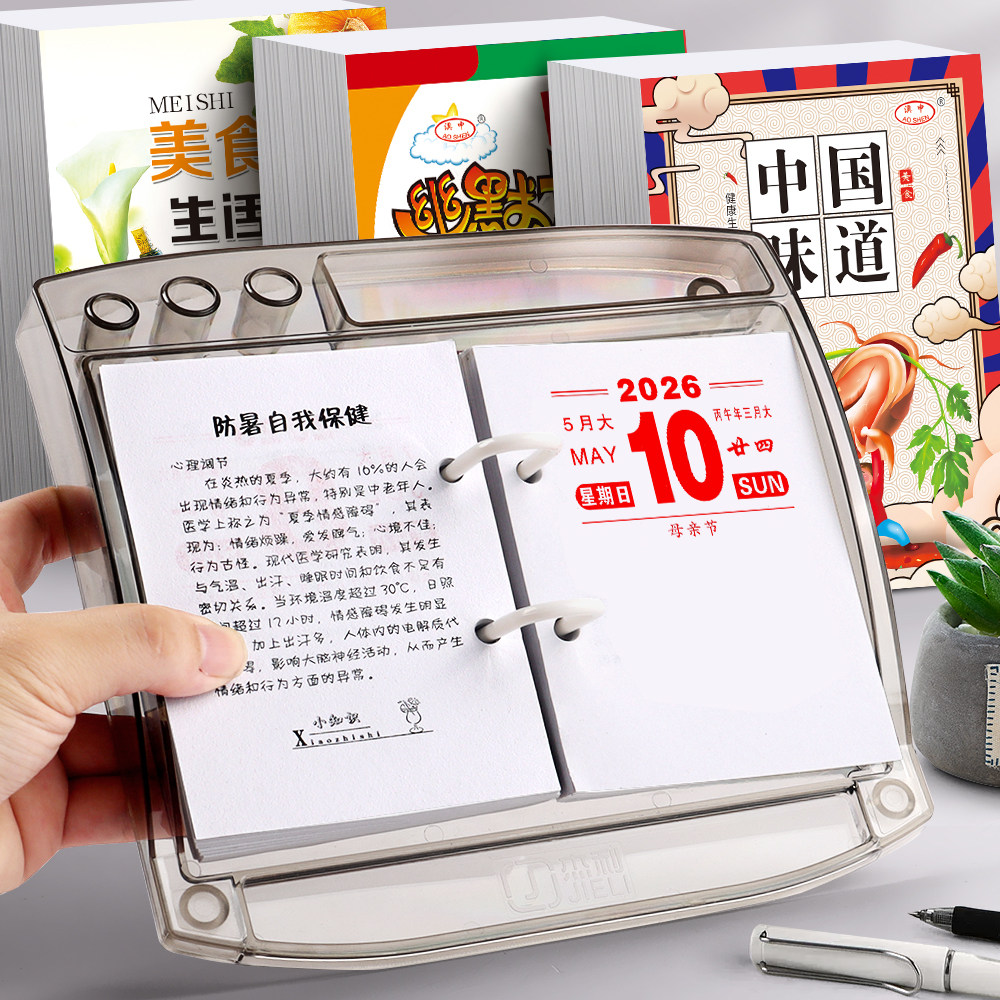 申球2026年商务台历芯马年日历心两孔64K办公室桌面创意简约摆件健康养生活页台历芯手撕 木质台历架定制logo