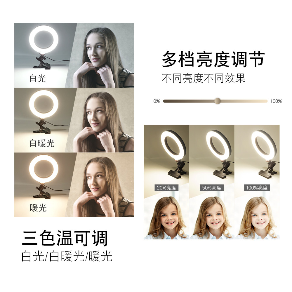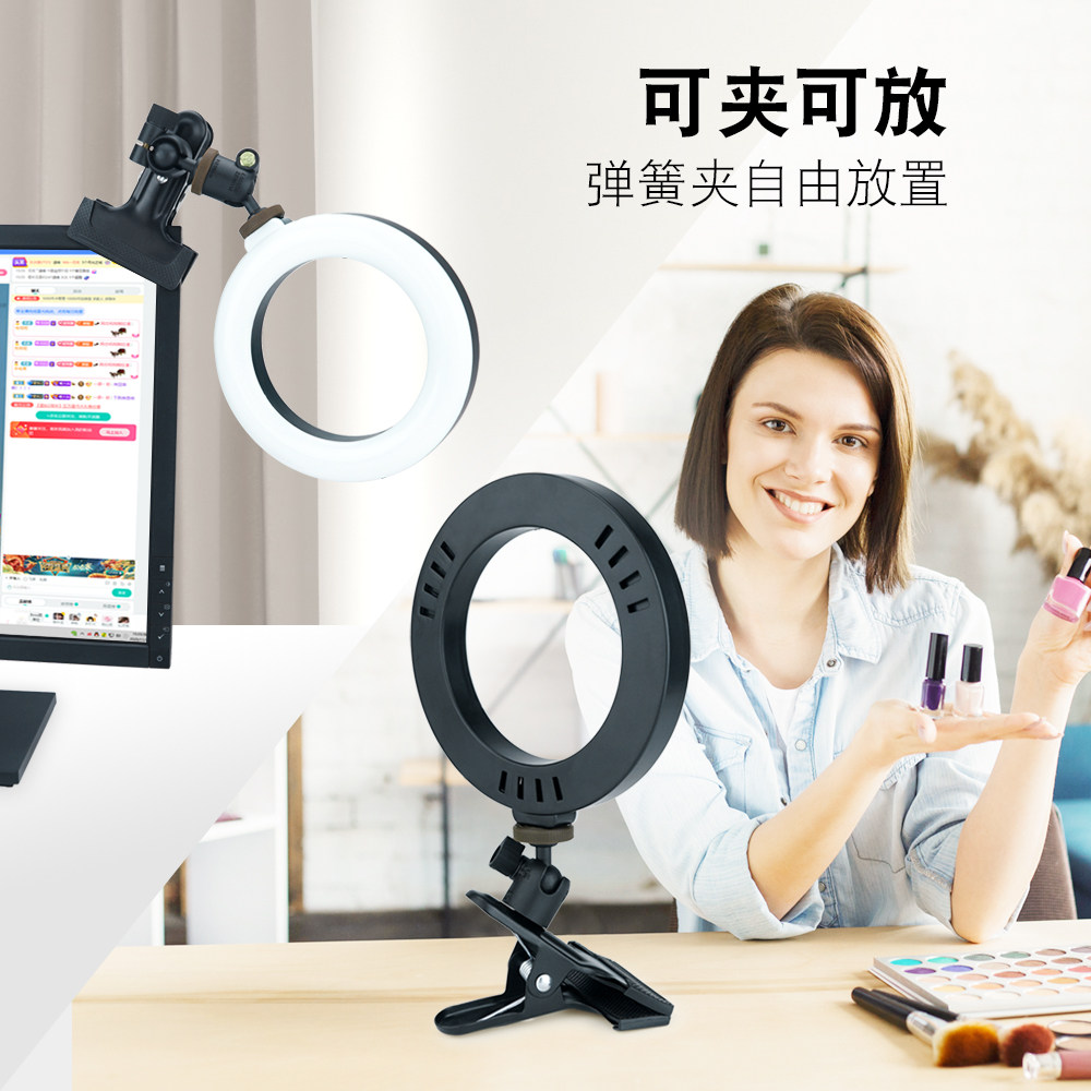 Linco Zenith 桌面夹式环形美颜直播补光灯电脑会议视频灯宿舍用大力夹阅读灯三色温调节云台摄影手机美颜灯