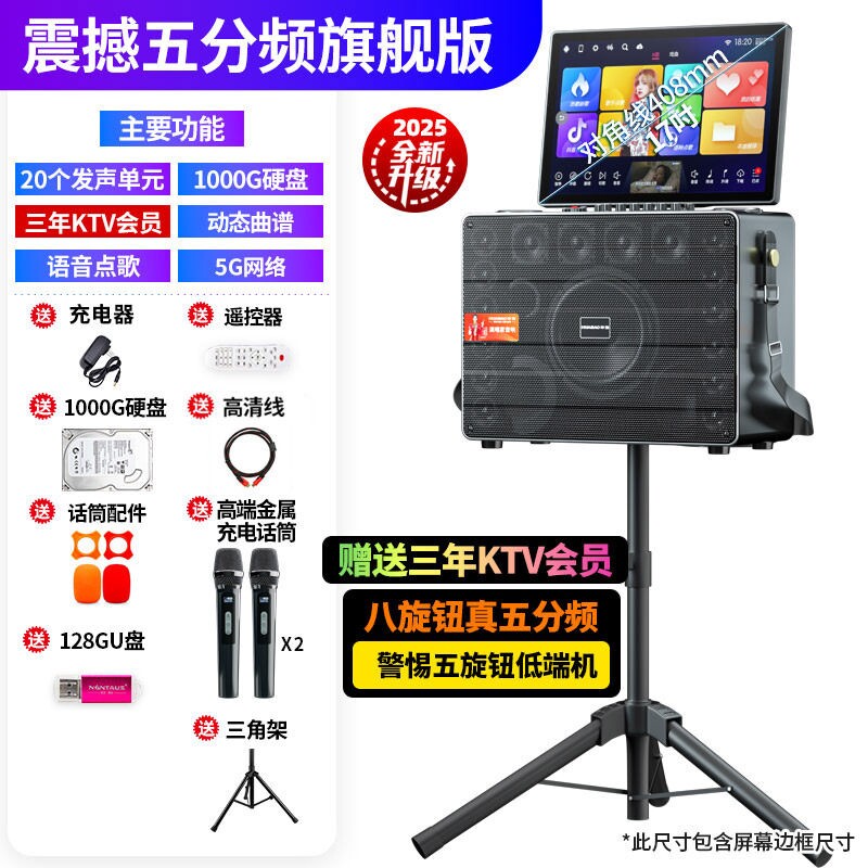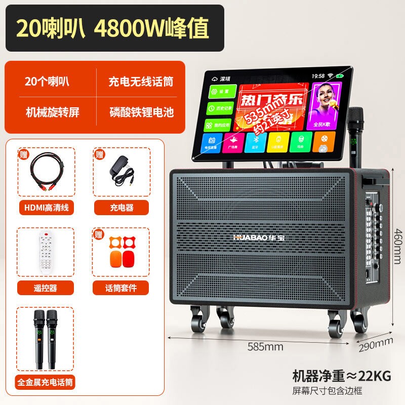 山水广场舞音响带显示屏户外唱k箱点歌卡拉ok一体机家庭ktv套装音