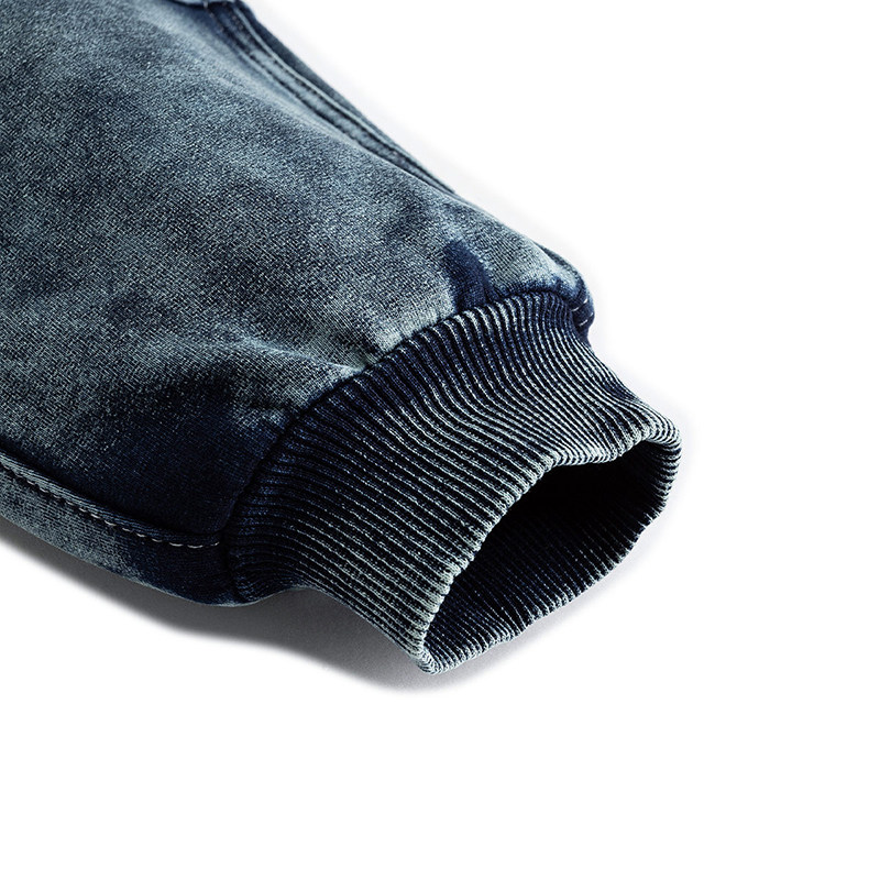 经典Jogger牛仔裤型与罗纹束脚口结合