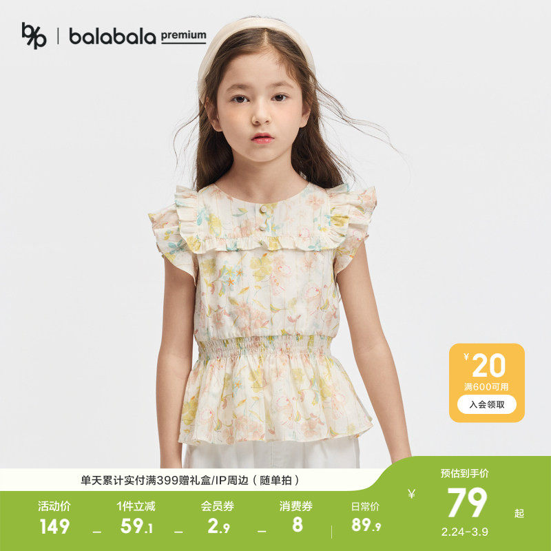 【premium】巴拉巴拉童装高端线夏探秘自然系列荷叶边短袖衬衫女