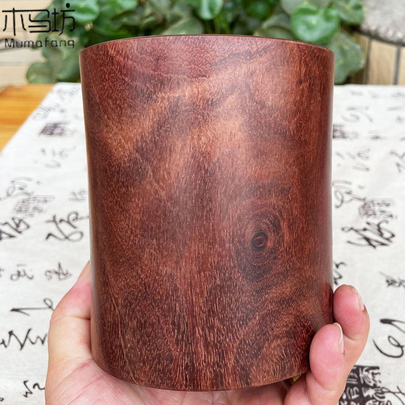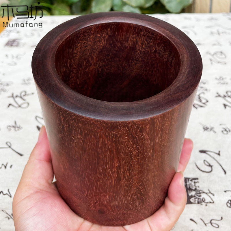 小叶紫檀笔筒红木雕刻原木复古毛笔筒办公桌中式文房四宝书房礼品