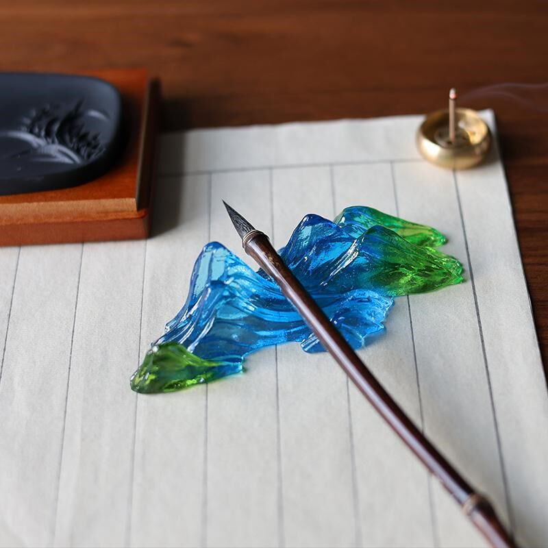 琉璃观山毛笔笔搁假山笔架文房四宝千里江山书房新中式桌面摆件