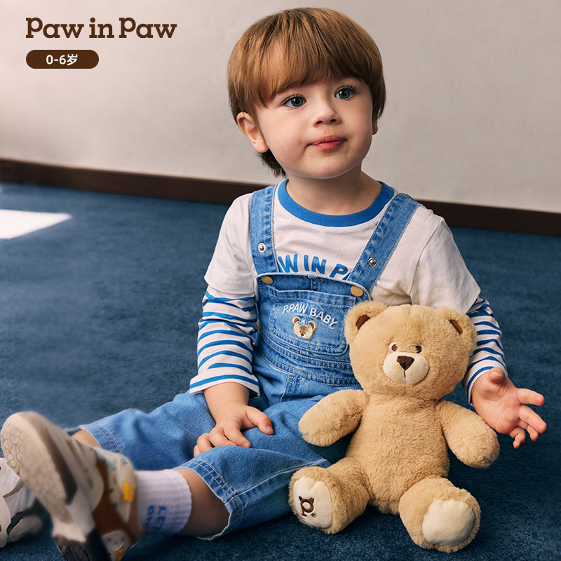 【全棉】PawinPaw卡通小熊童装26年新款男宝宝宽松牛仔全棉背带裤