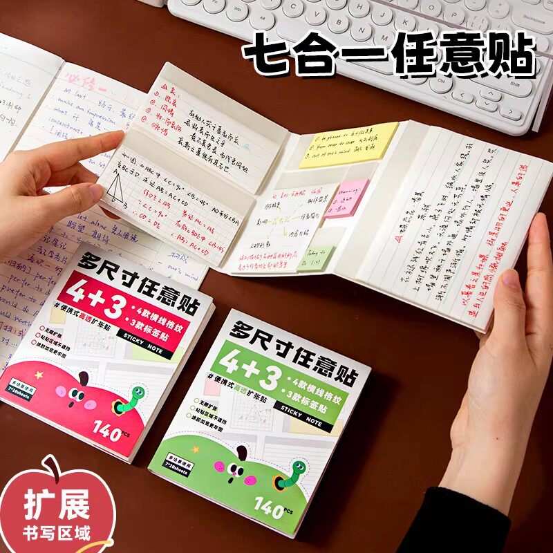 7种尺寸!透明可撕扩张便利贴有粘性初中生专用可粘扩展任意贴